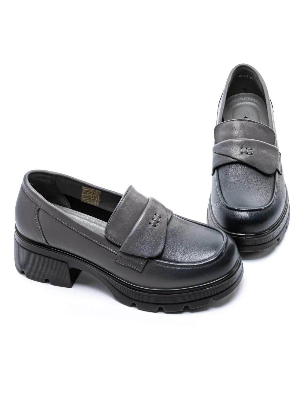 обувки с ток от естествена кожа 1355-1 Сиво | Advancer