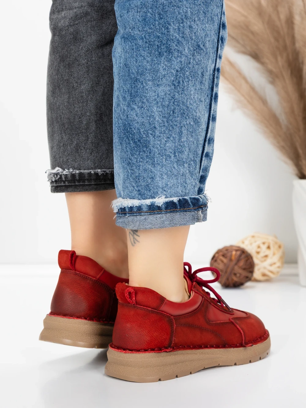 Дамски ежедневни обувки от естествена кожа 886 Червено | Franco Gerardo