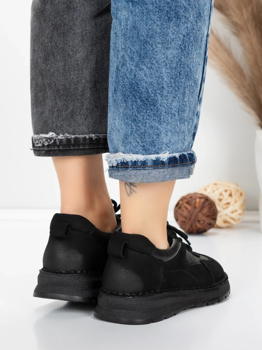 Дамски ежедневни обувки от естествена кожа 886 Черен | Franco Gerardo
