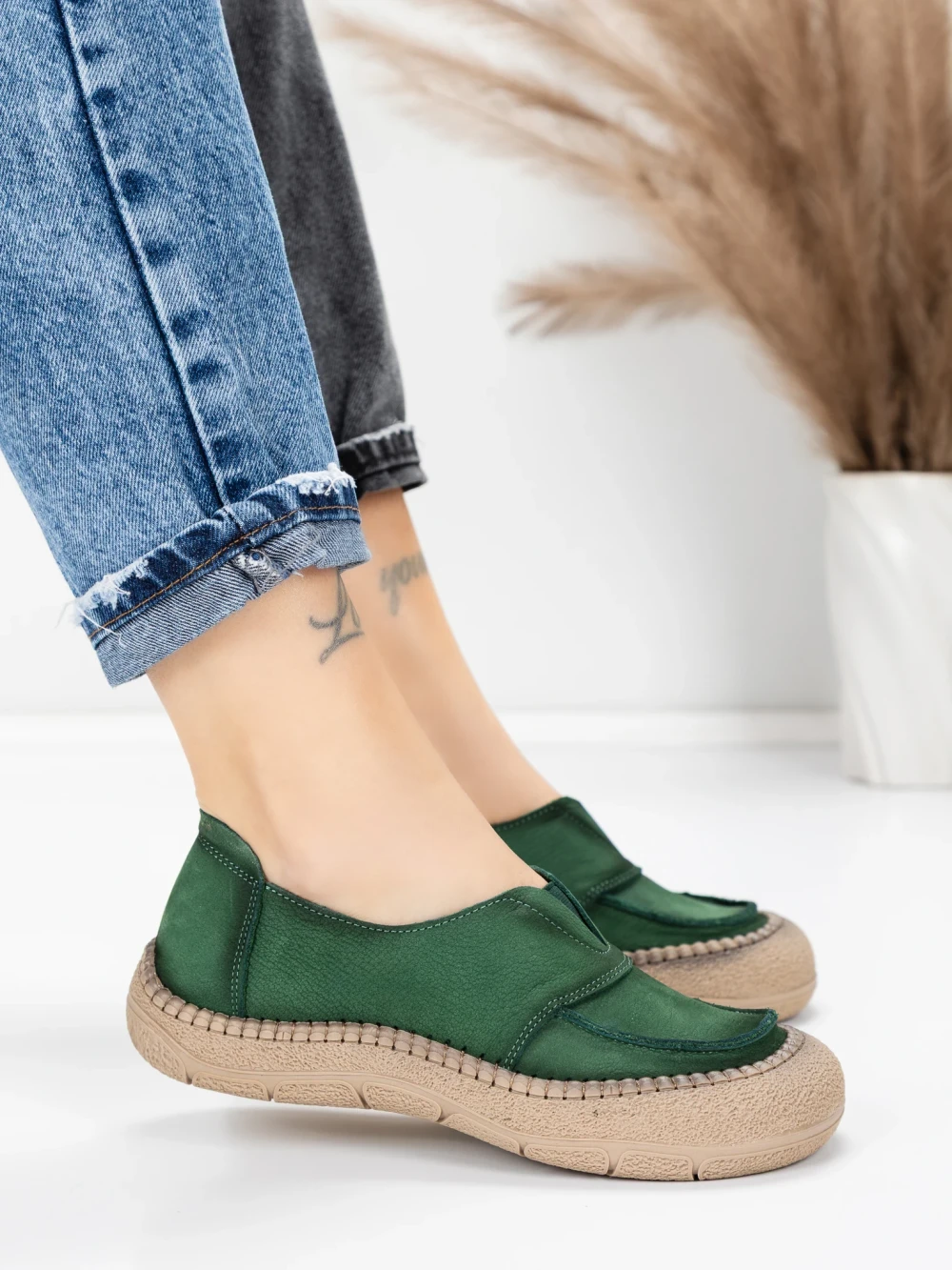 Дамски ежедневни обувки от естествена кожа KM5165 Зелено | Advancer