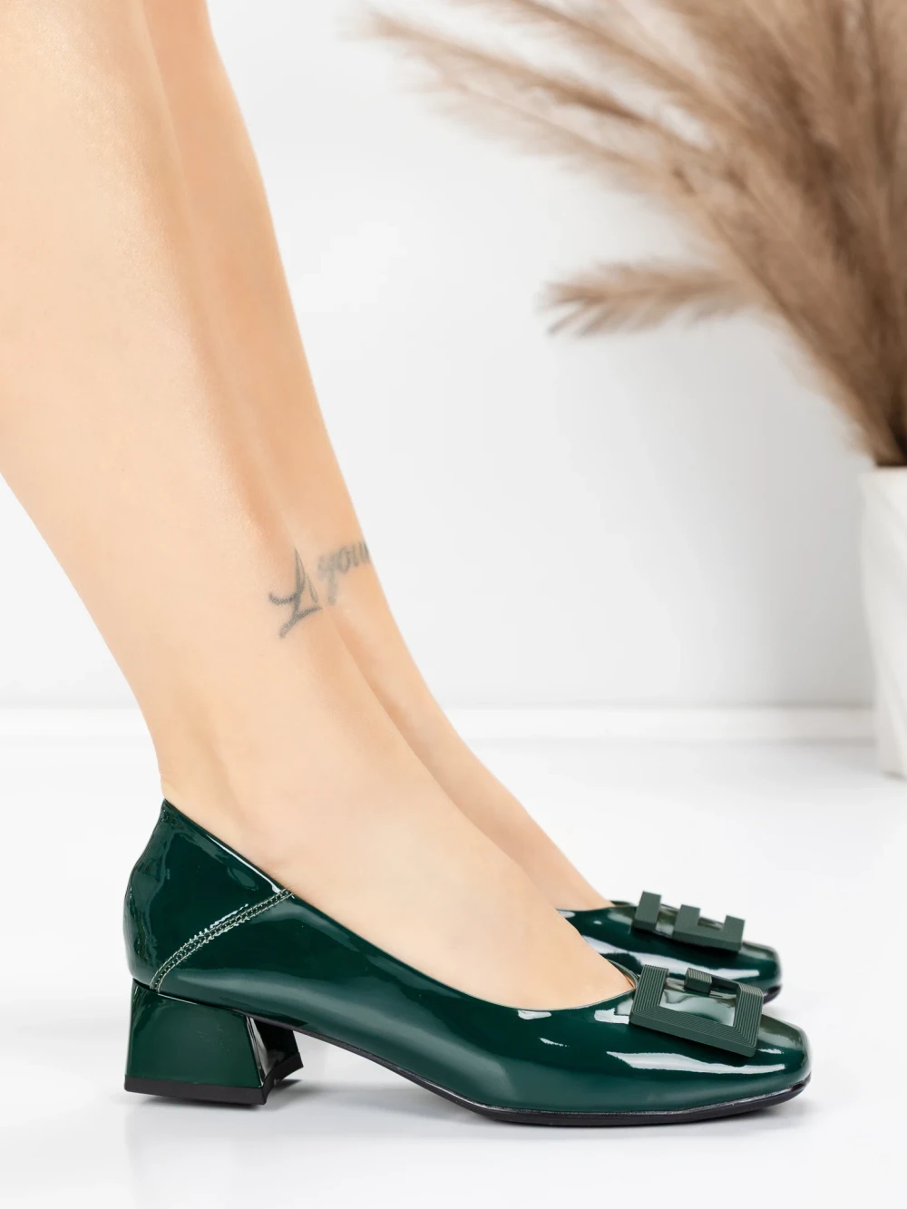 обувки с ток от естествена кожа 1011-1062 Зелено | Formazione