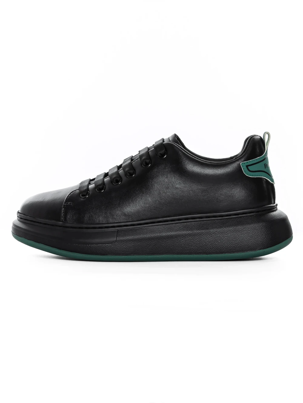Mъжки спортни обувки от естествена кожа 51191 Черен-Зелено | Advancer