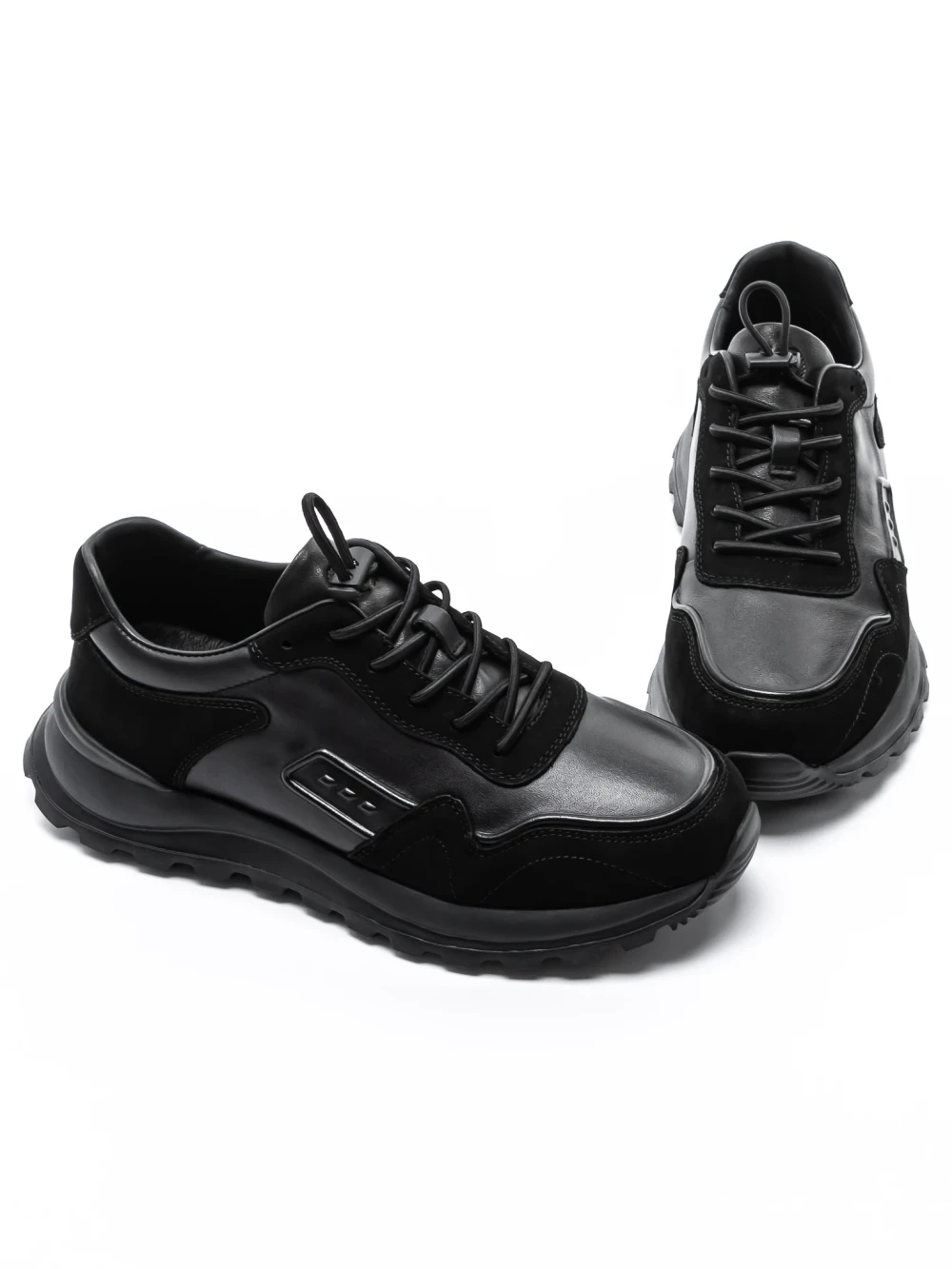 Mъжки спортни обувки от естествена кожа 8077 Черен | Advancer