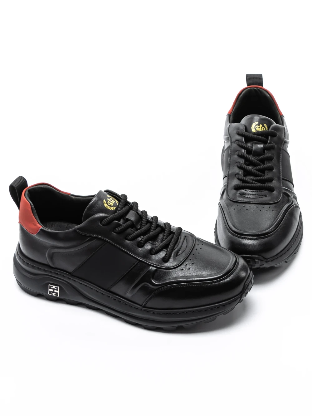 Mъжки спортни обувки от естествена кожа 302 Черен-Червено | Advancer