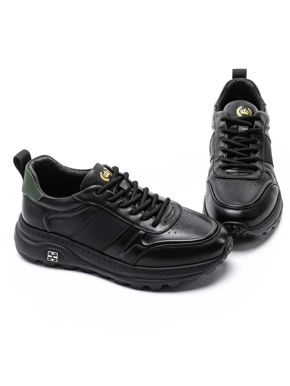 Mъжки спортни обувки от естествена кожа 302 Черен-Зелено | Advancer