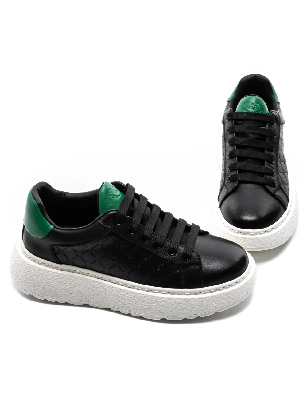 Mъжки спортни обувки от естествена кожа 5302 Черен-Зелено | Advancer