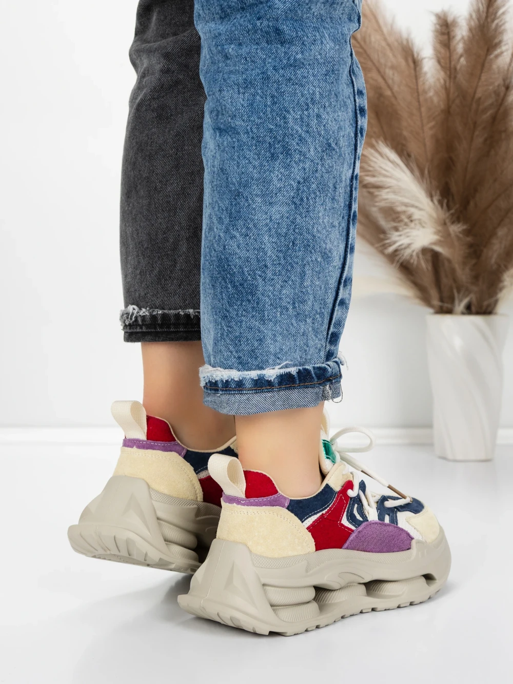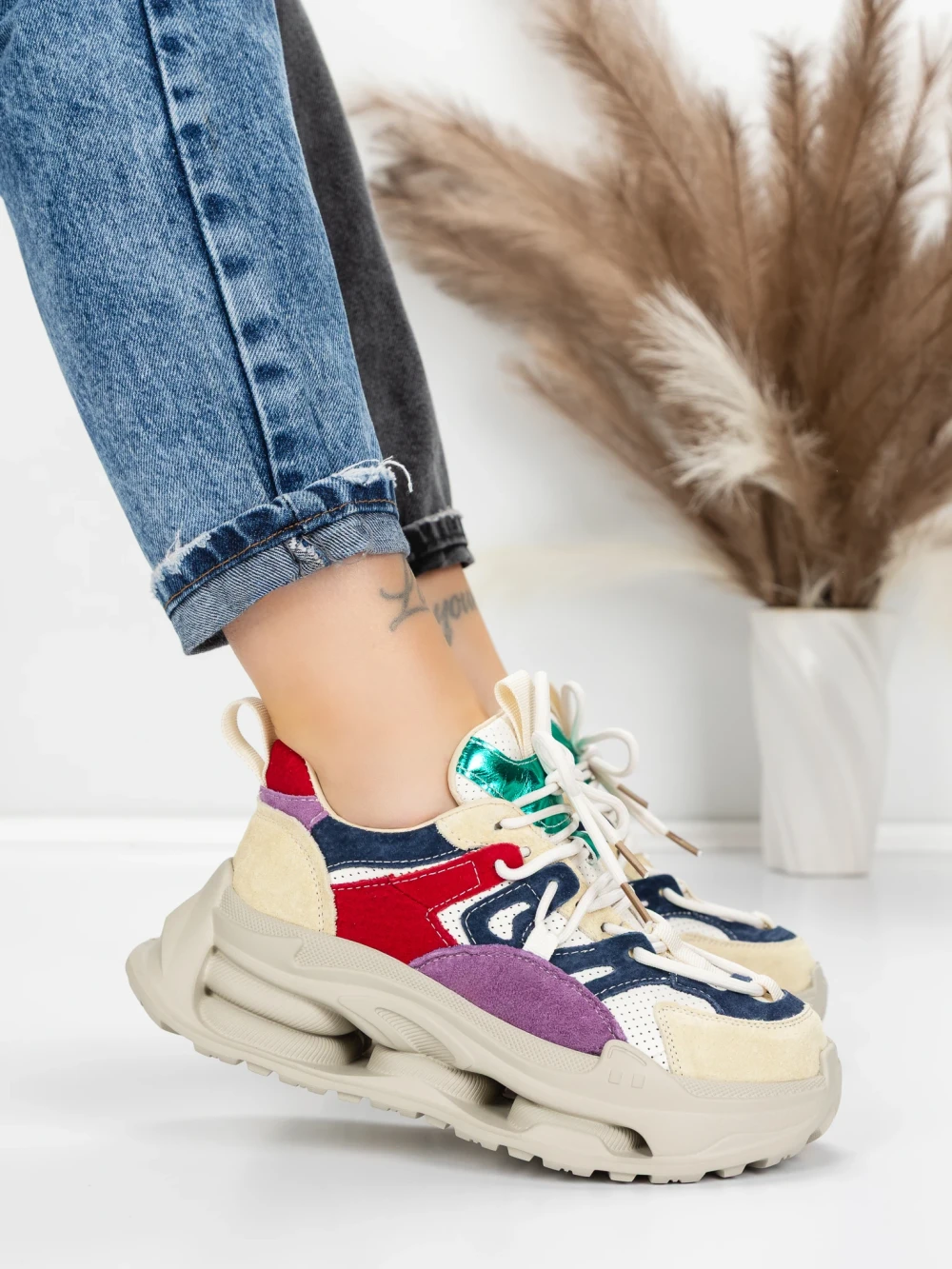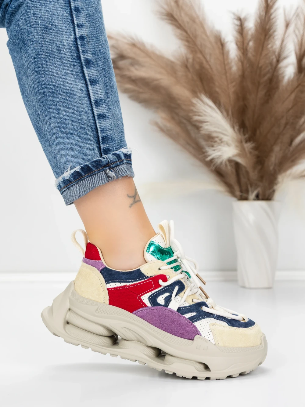 Дамски спортни обувки от естествена кожа HY1333 Лилаво-Кремав цвят | Franco Gerardo