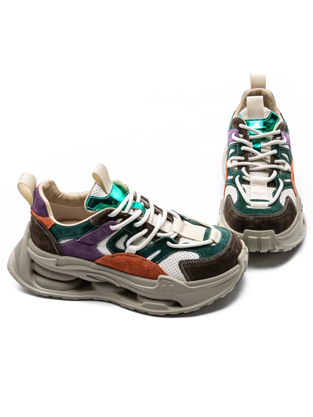 Дамски спортни обувки от естествена кожа Y5758-2 Зелено-Лилаво | Advancer