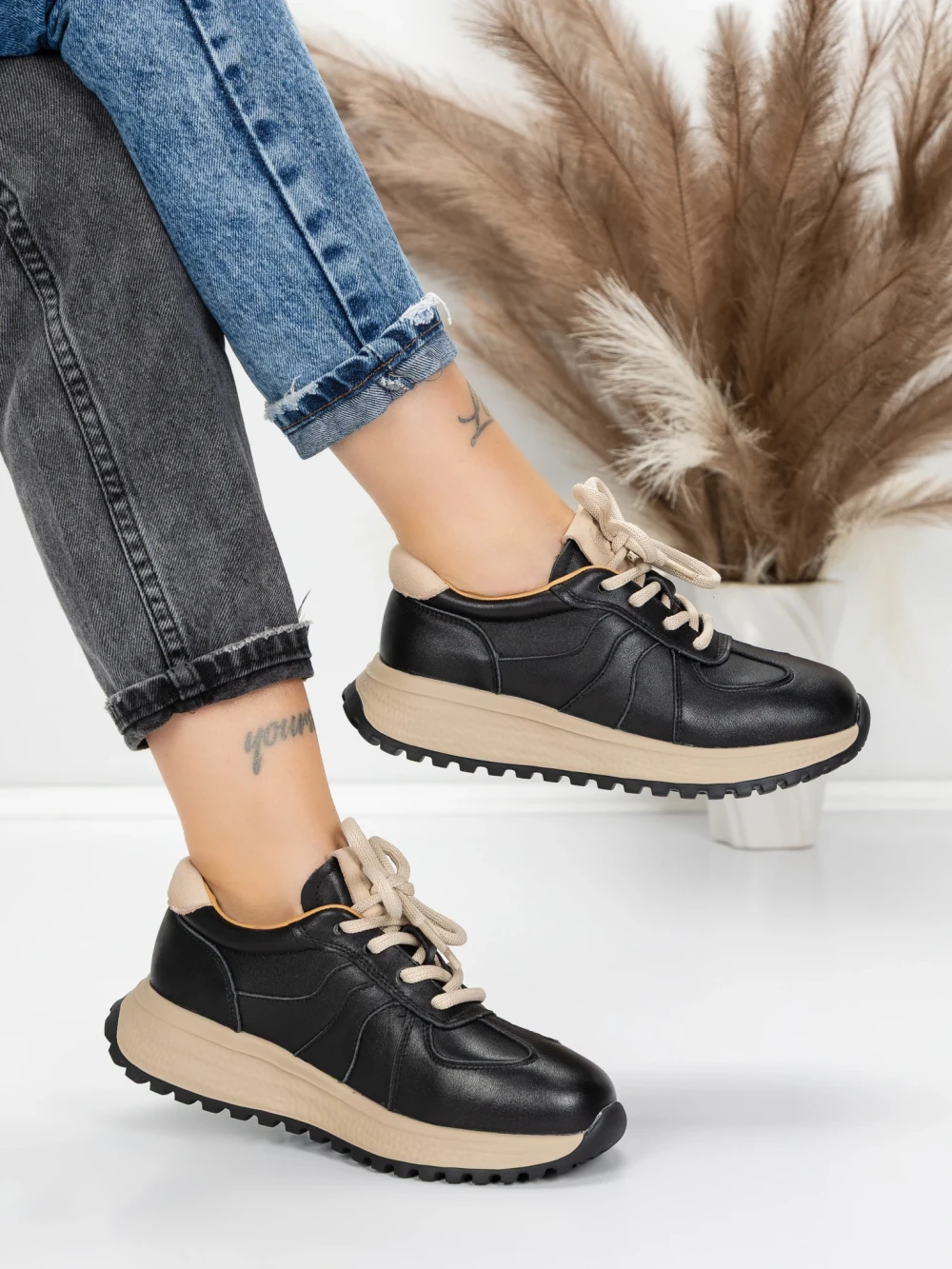 Дамски спортни обувки от естествена кожа KM9819 Черен | Franco Gerardo