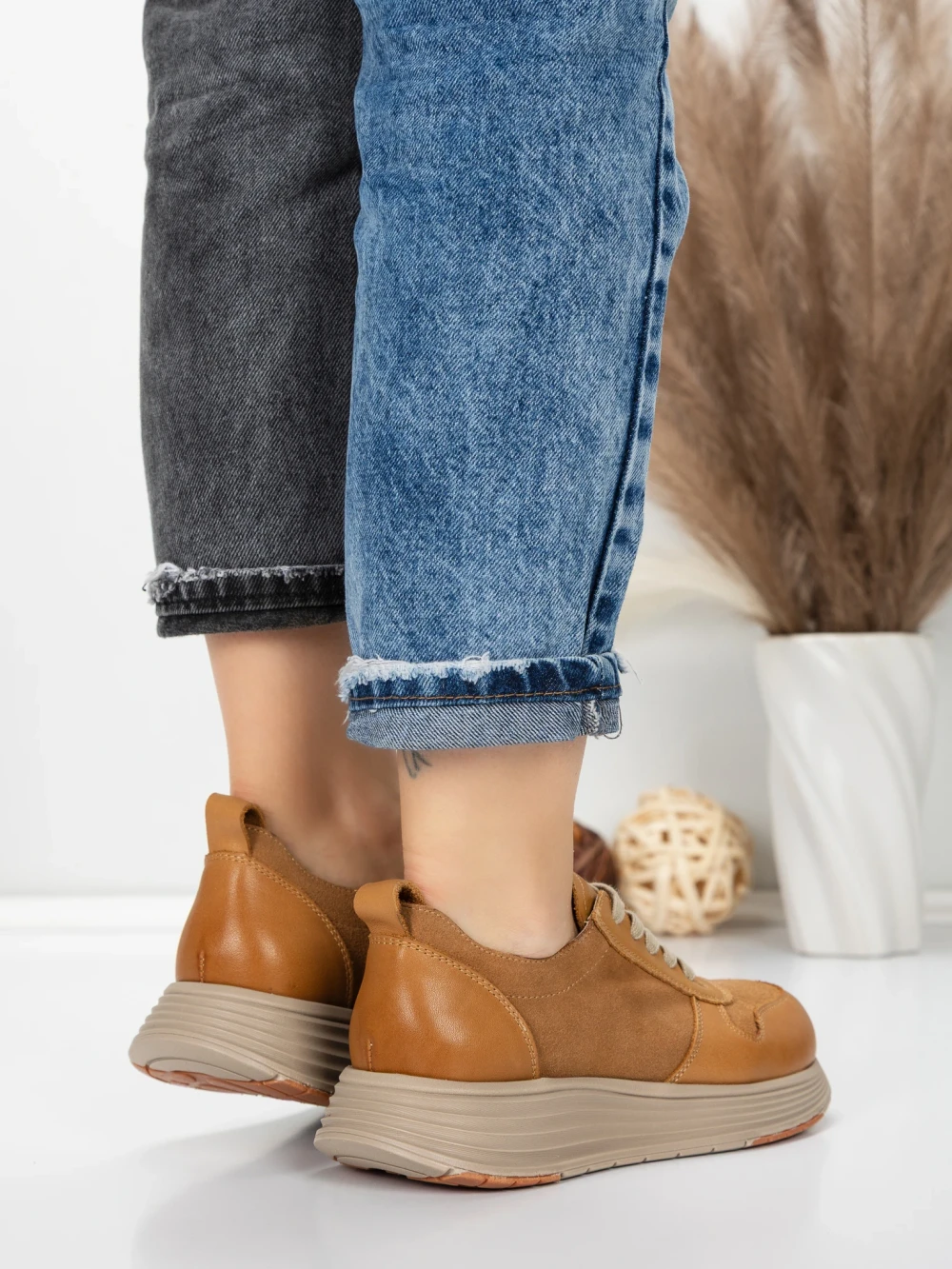 Дамски спортни обувки от естествена кожа HY6376 Кафе | Franco Gerardo