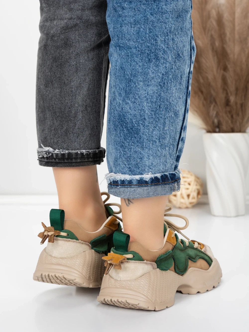 Дамски спортни обувки от естествена кожа 7110 Зелено-Кремав цвят | Franco Gerardo