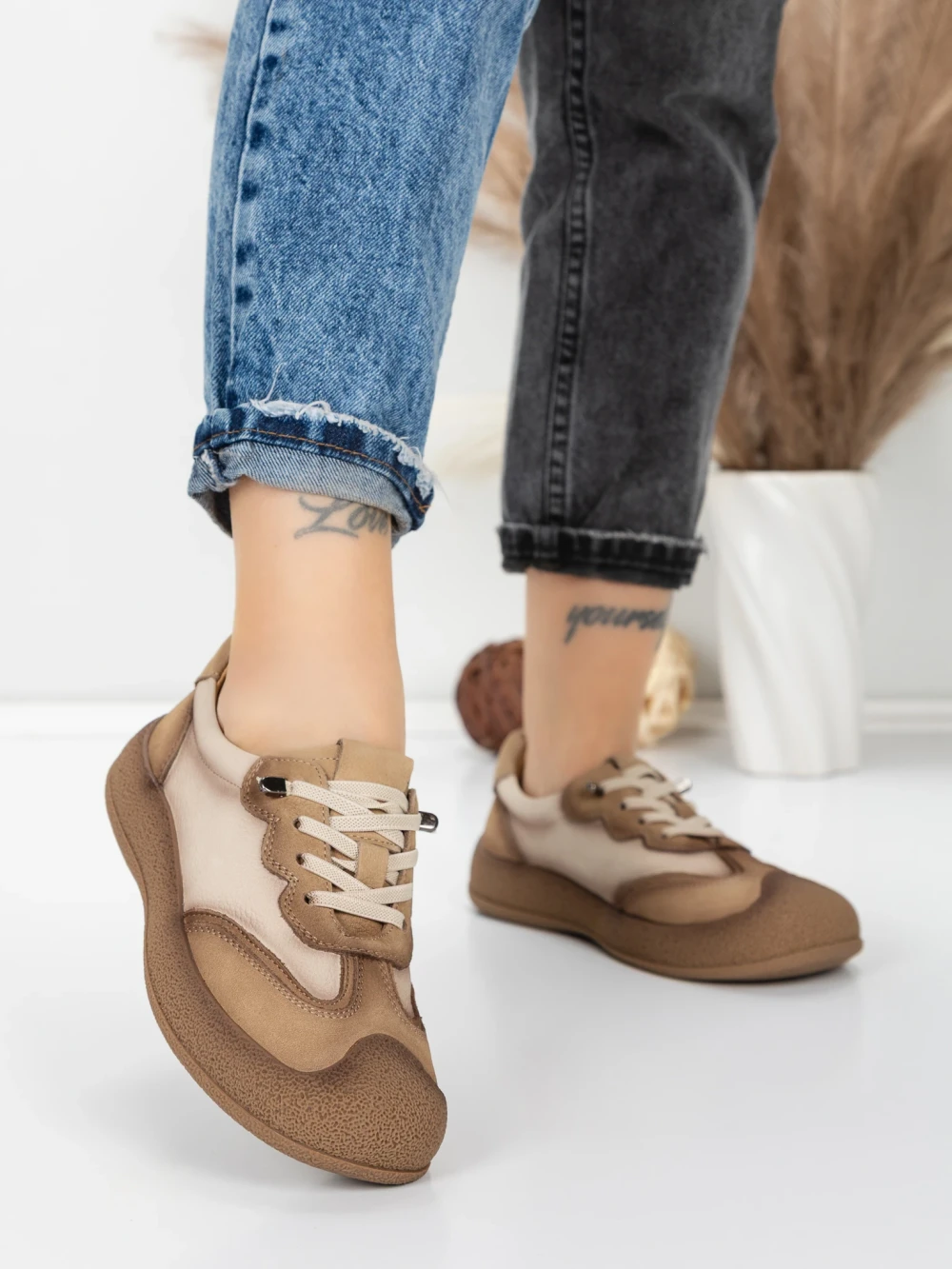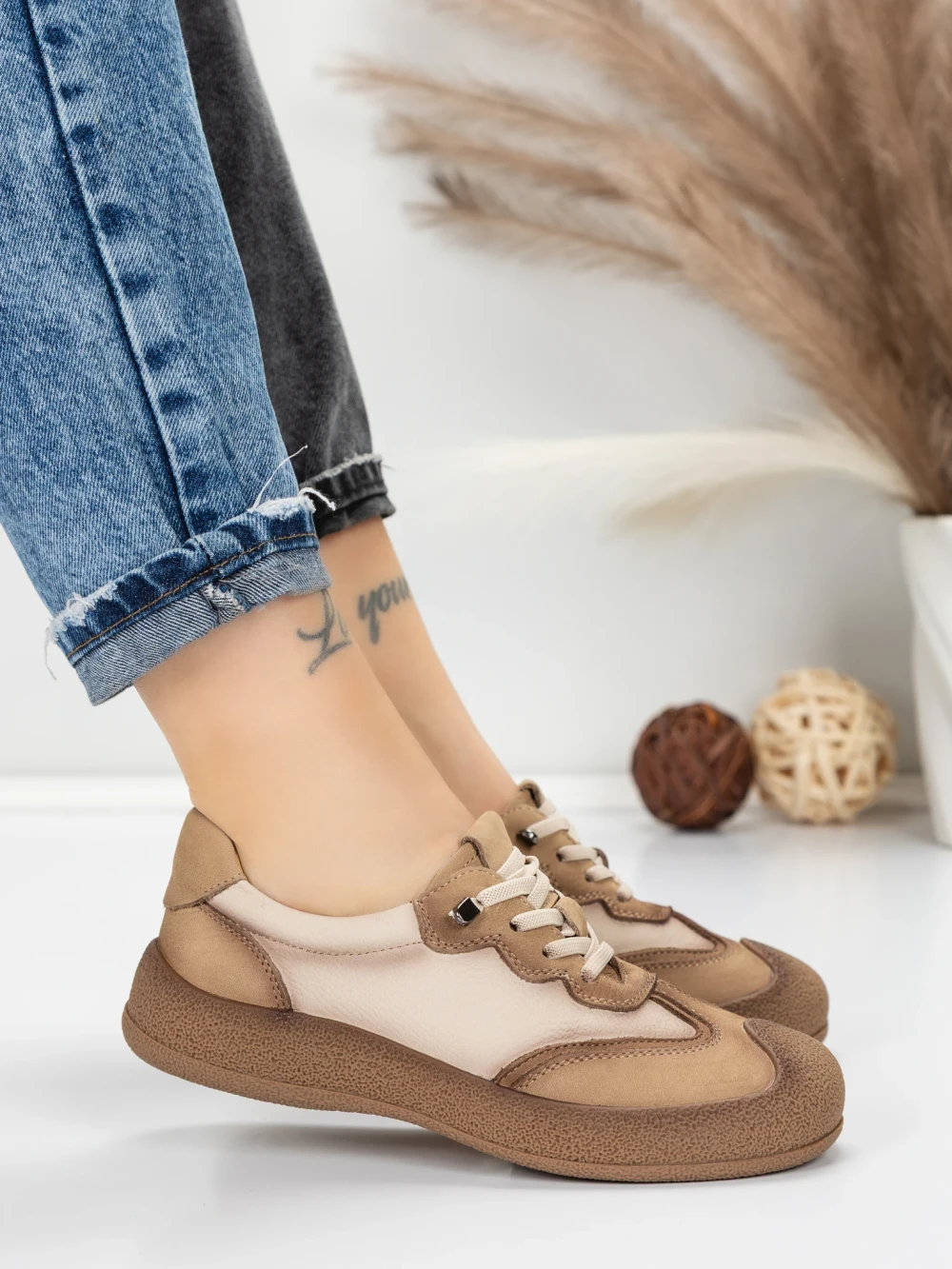 Дамски спортни обувки от естествена кожа HY1333 Кафе-Кремав цвят | Franco Gerardo