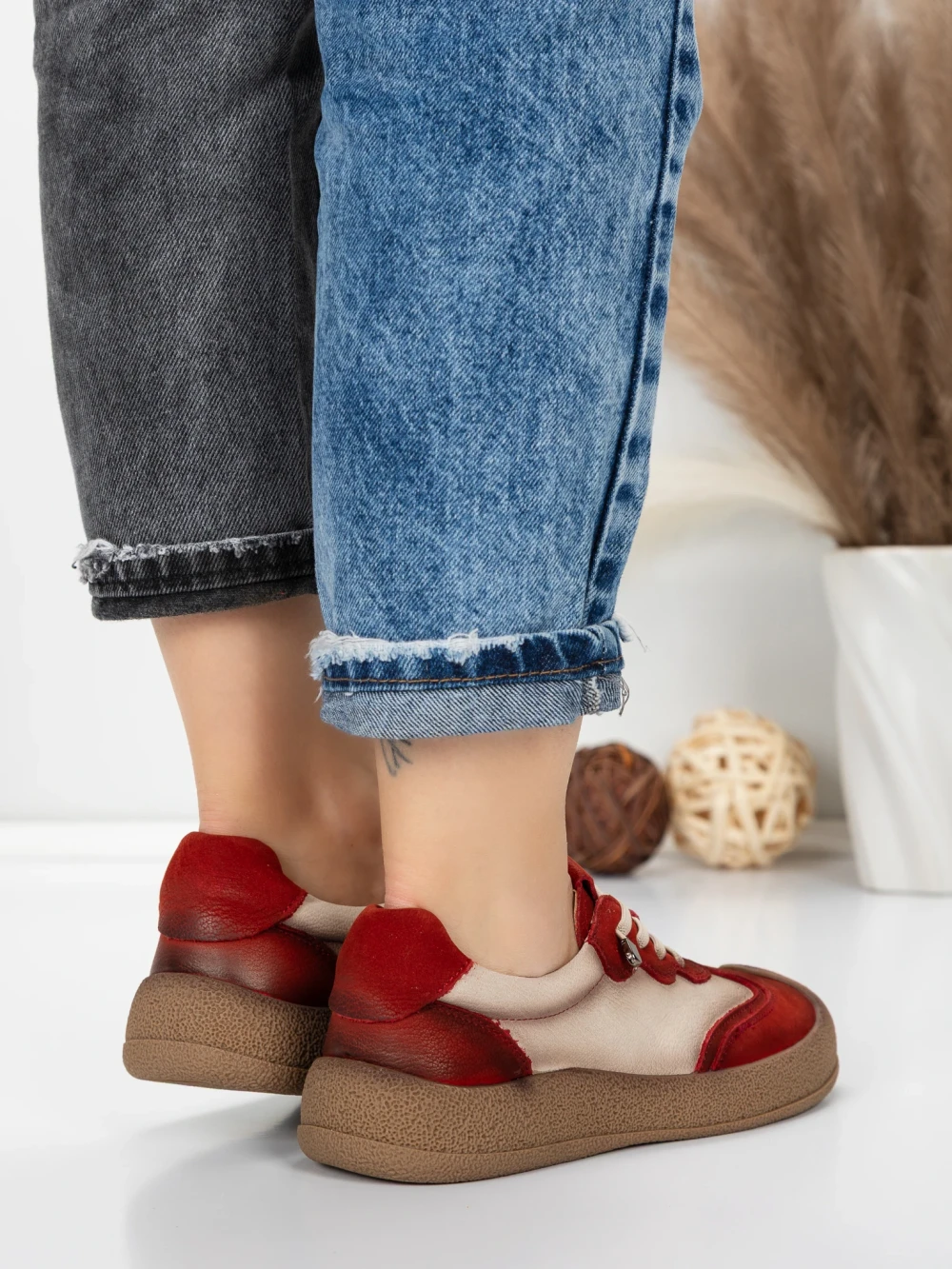 Дамски спортни обувки от естествена кожа 773 Червено | Franco Gerardo