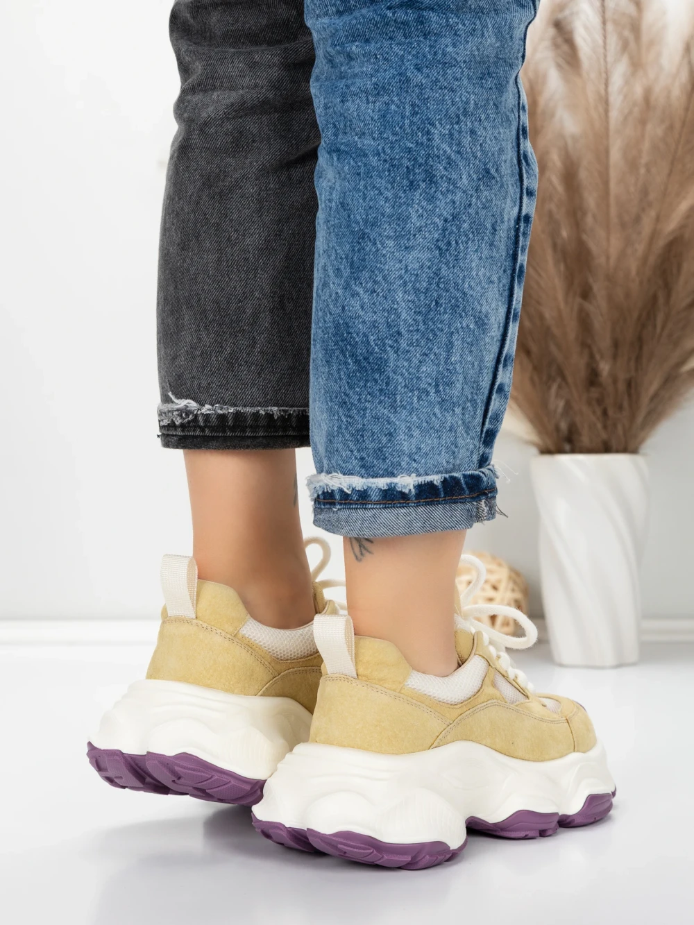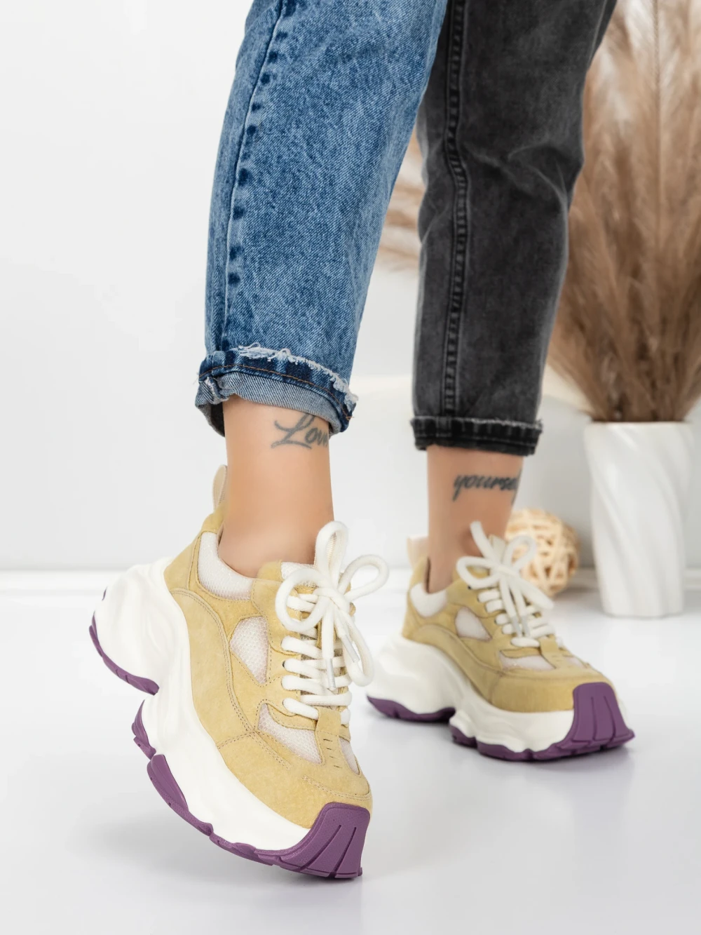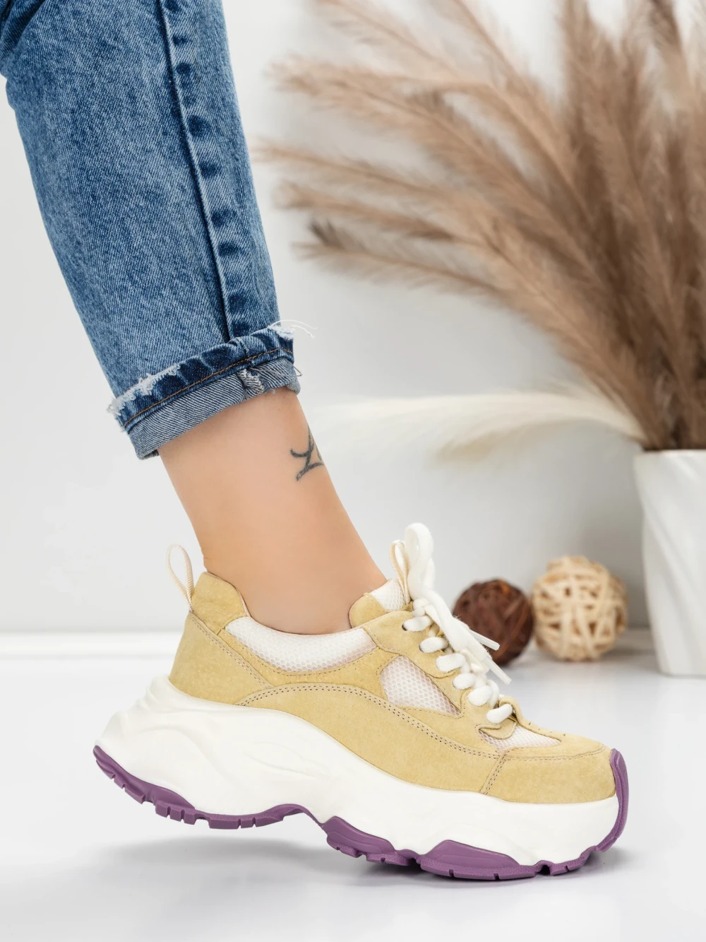 Дамски спортни обувки от естествена кожа 7110 Жълто-Кремав цвят | Franco Gerardo