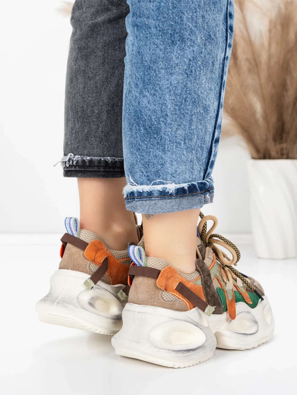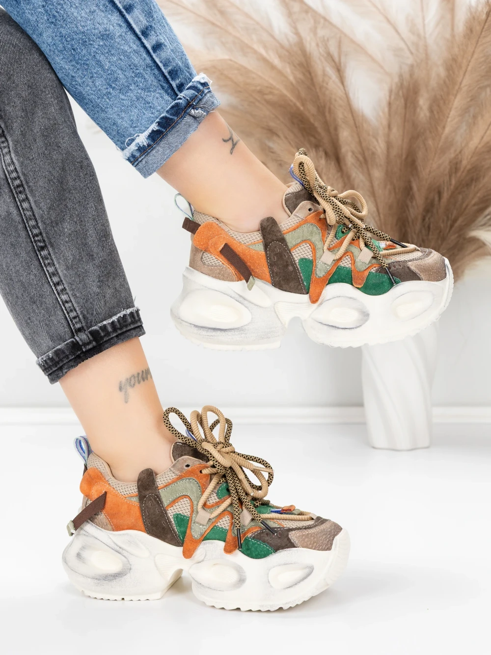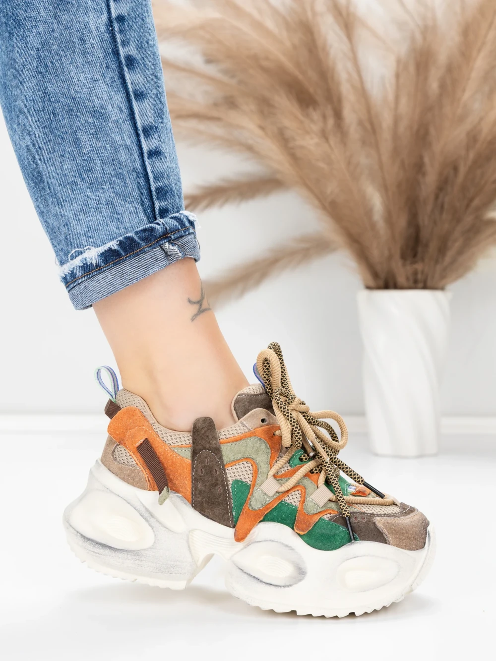 Дамски спортни обувки от естествена кожа HY8988-1 Кафяво-Зелено | Franco Gerardo
