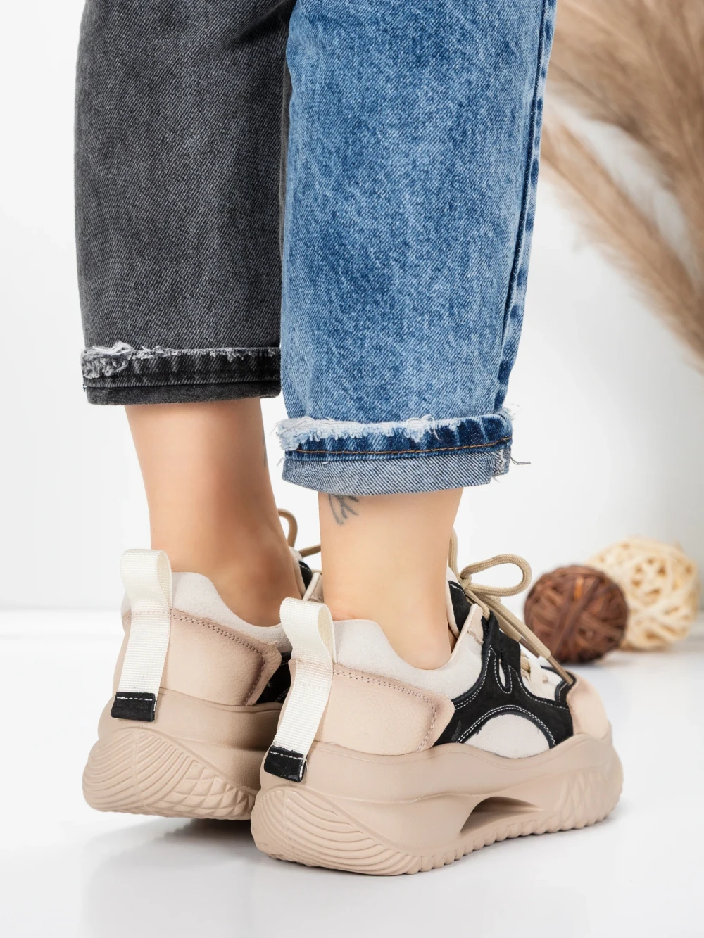 Дамски кецове с платформа 3SJN29 Бежово | Mei
