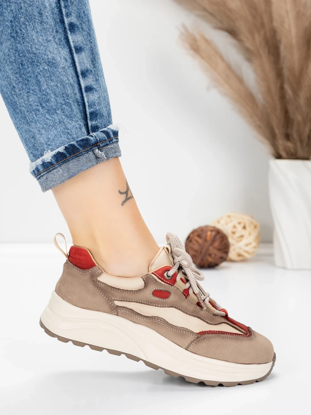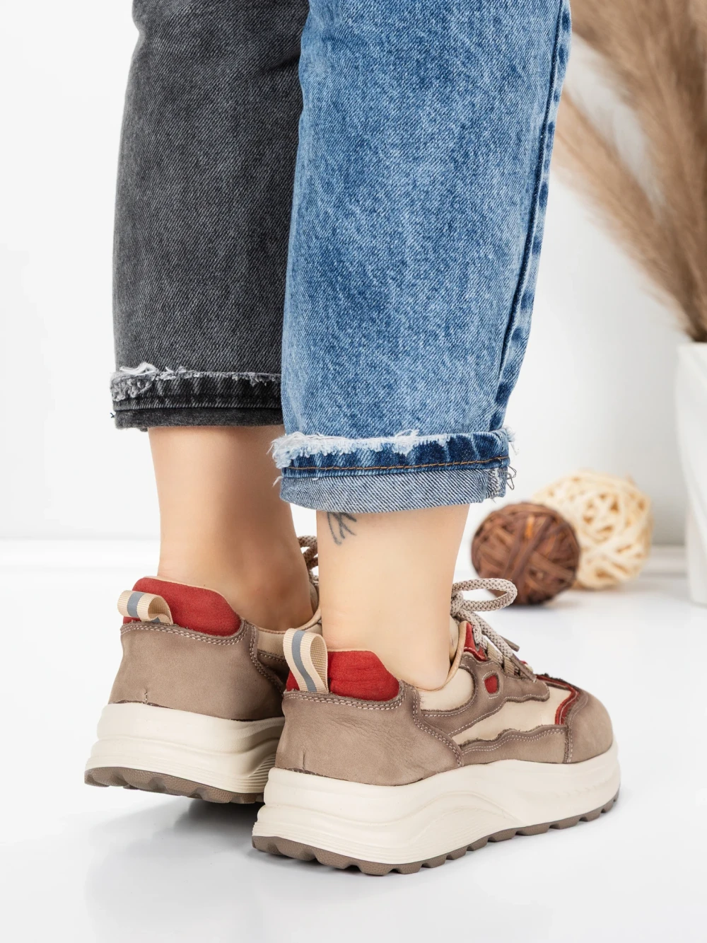 Дамски спортни обувки от естествена кожа 5SZ12 Бежово | Pantoful