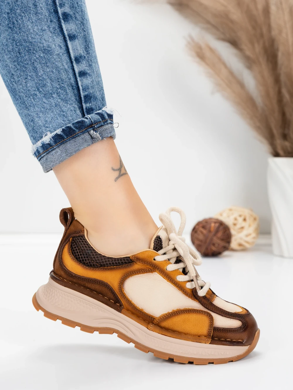 Дамски спортни обувки от естествена кожа 10018 Жълто | Franco Gerardo