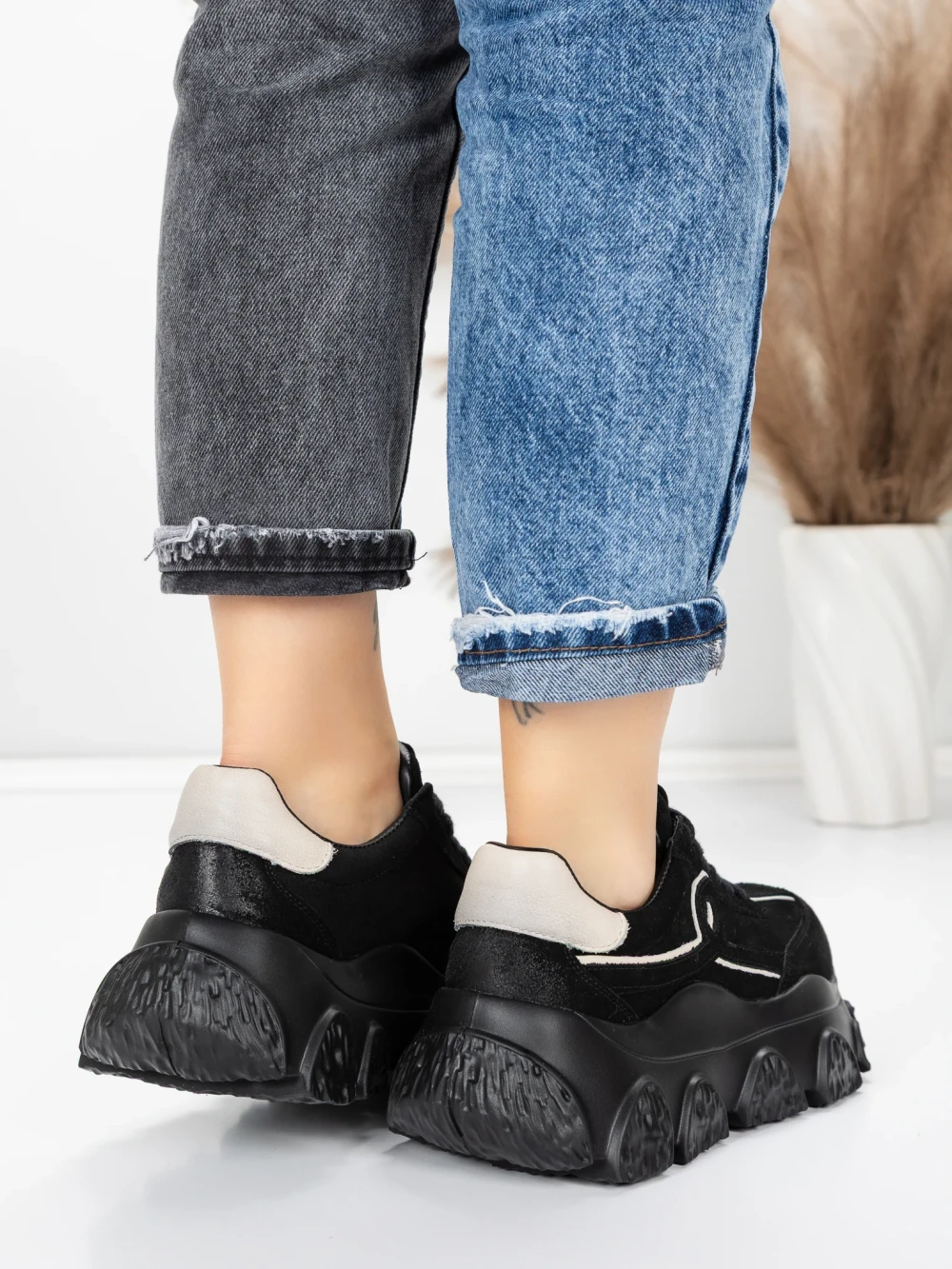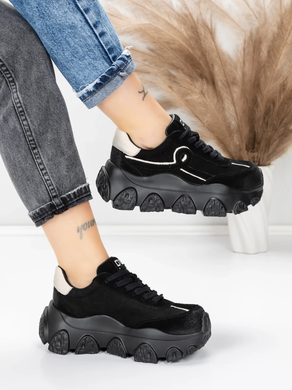 Дамски спортни обувки от естествена кожа 9802 Черен | Franco Gerardo