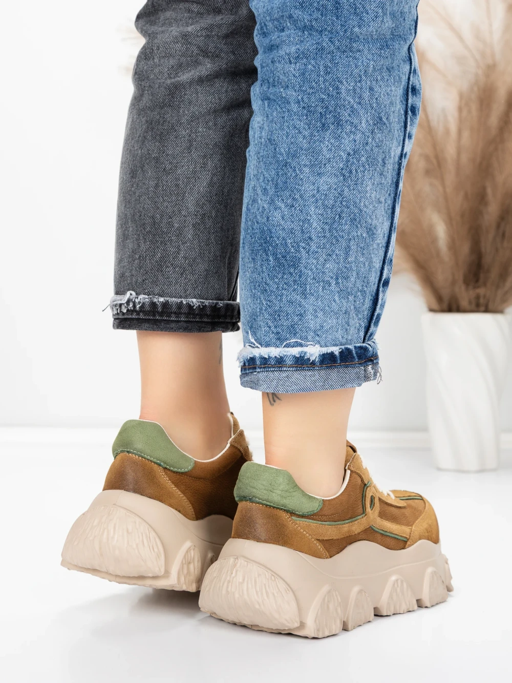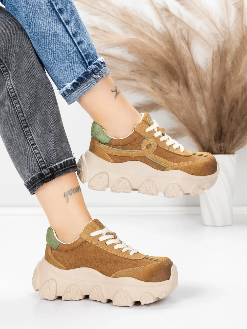 Дамски спортни обувки от естествена кожа 10018 Каки | Franco Gerardo