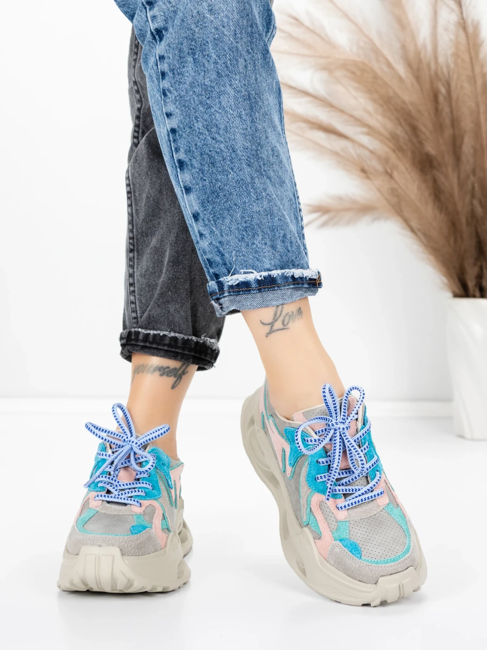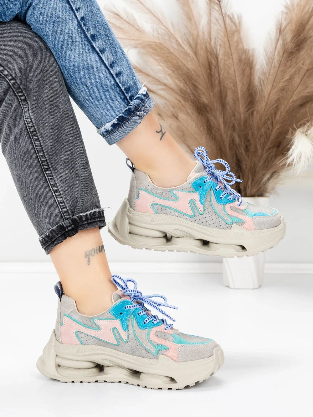 Дамски спортни обувки от естествена кожа HY8985 Синьо-Сиво | Franco Gerardo