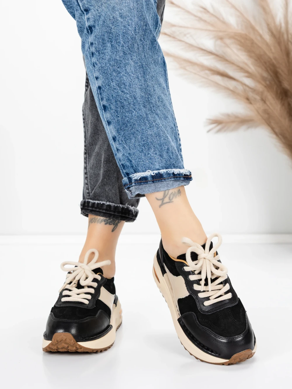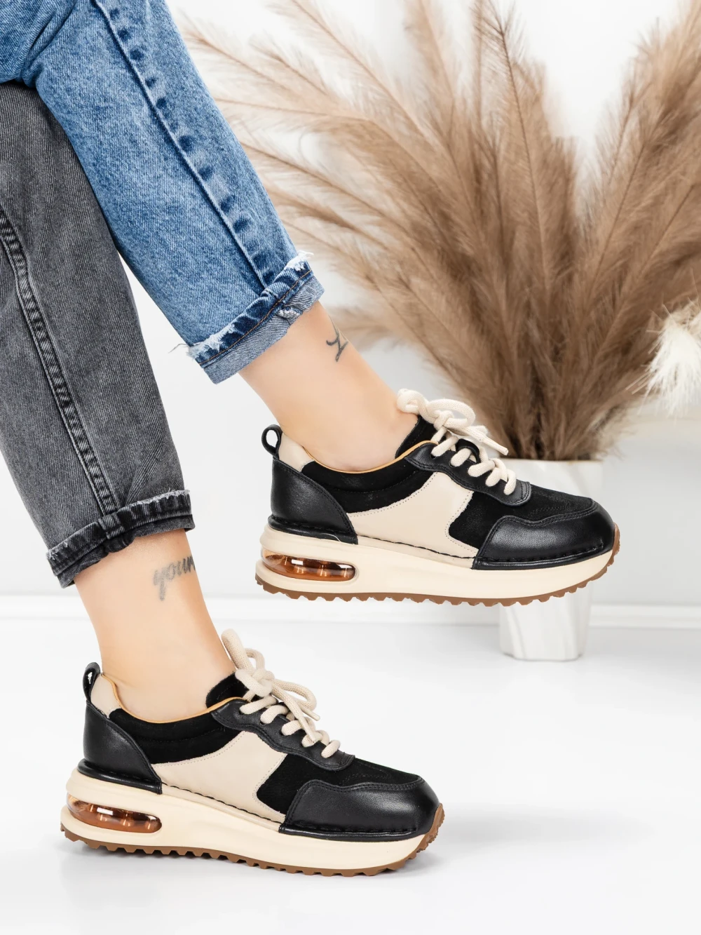 Дамски спортни обувки от естествена кожа 2577 Кремав цвят-Черен | Franco Gerardo