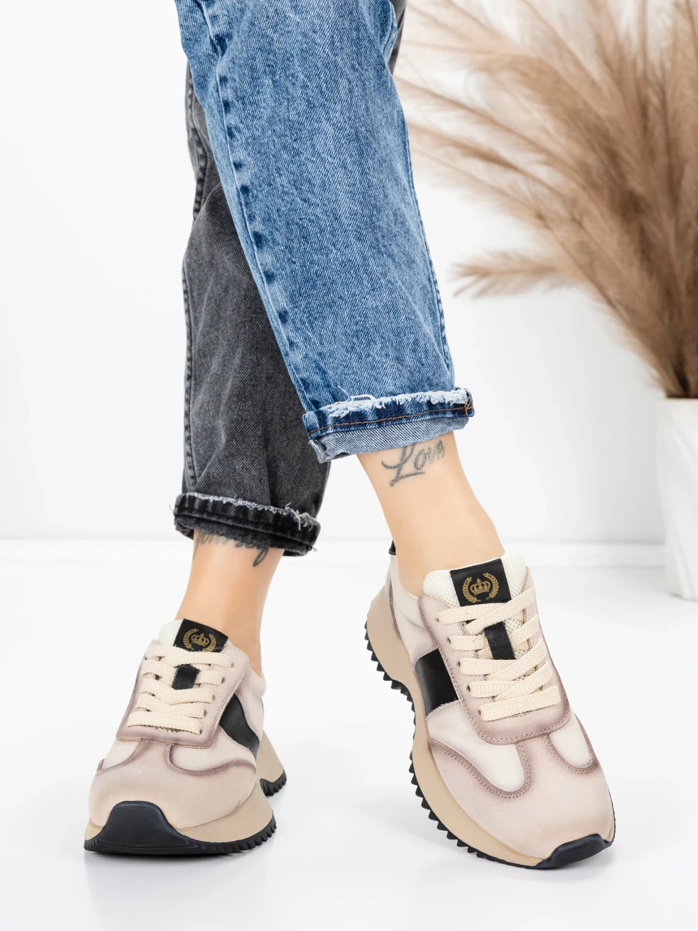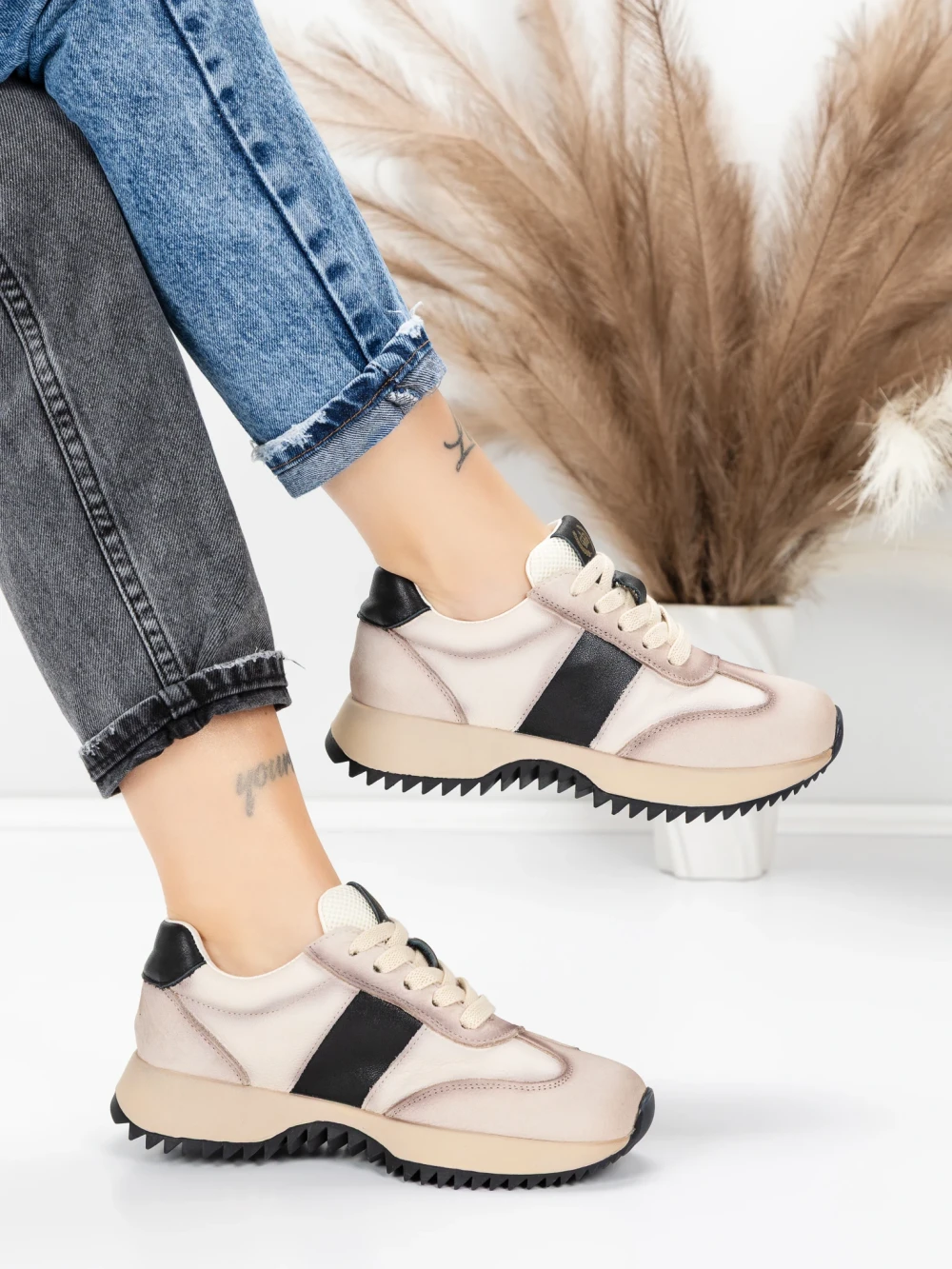 Дамски спортни обувки от естествена кожа 10785 Кремав цвят | Franco Gerardo