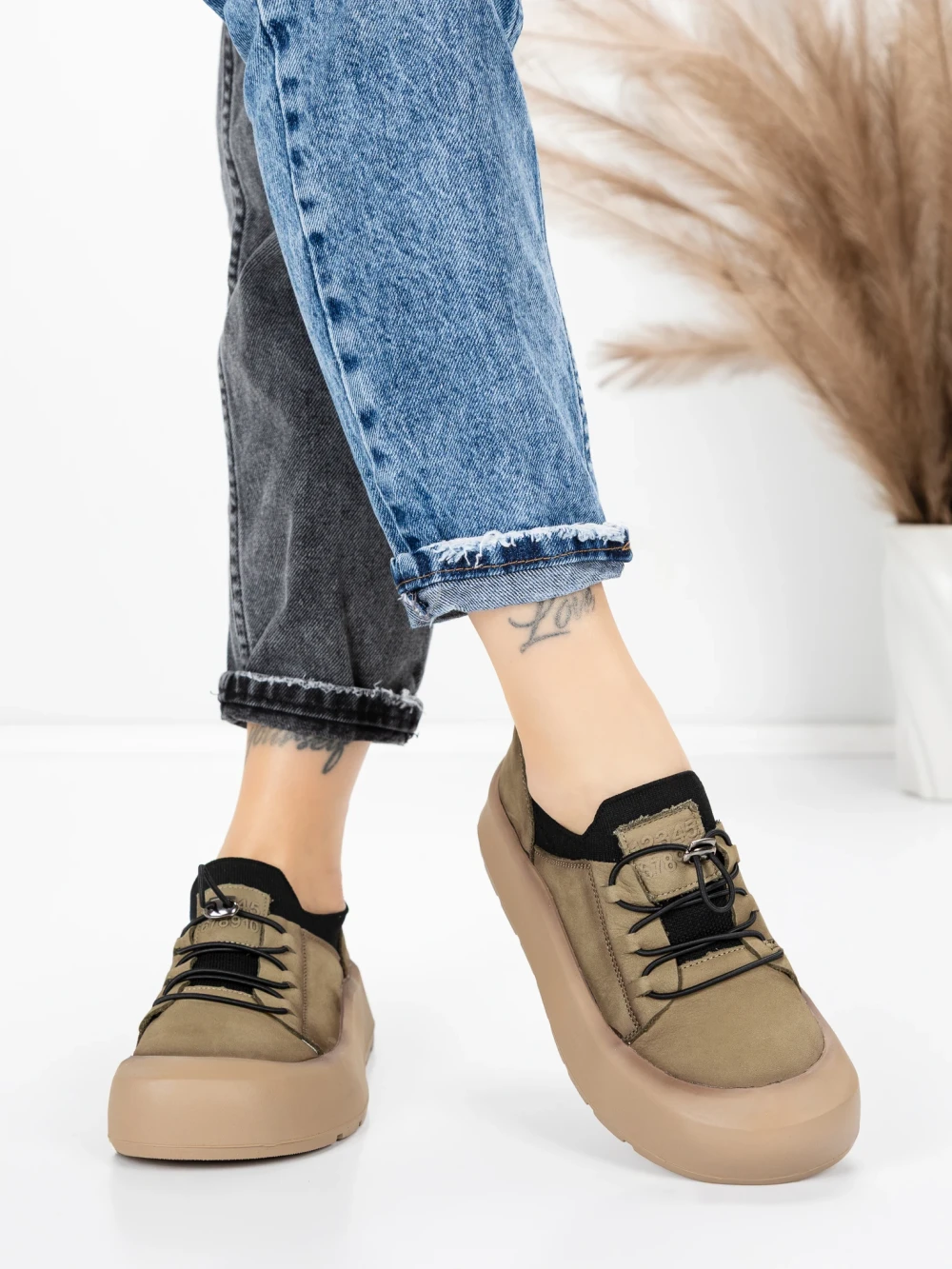 Дамски спортни обувки от естествена кожа HY3332 Каки-Праскова | Advancer