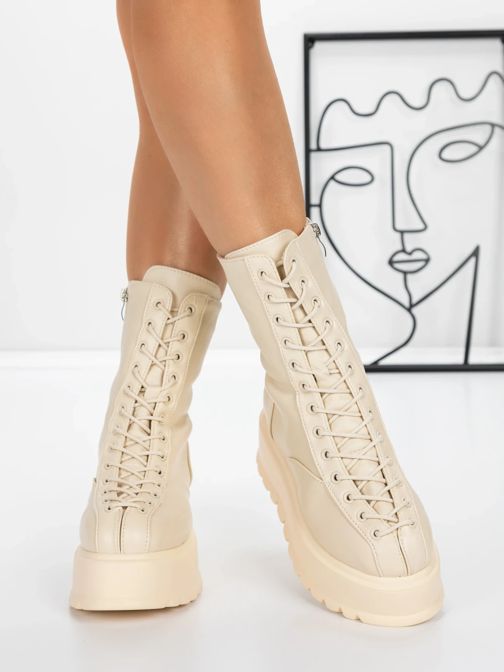 Дамски ботуши на платформа 3AL51 Бежово | Mei