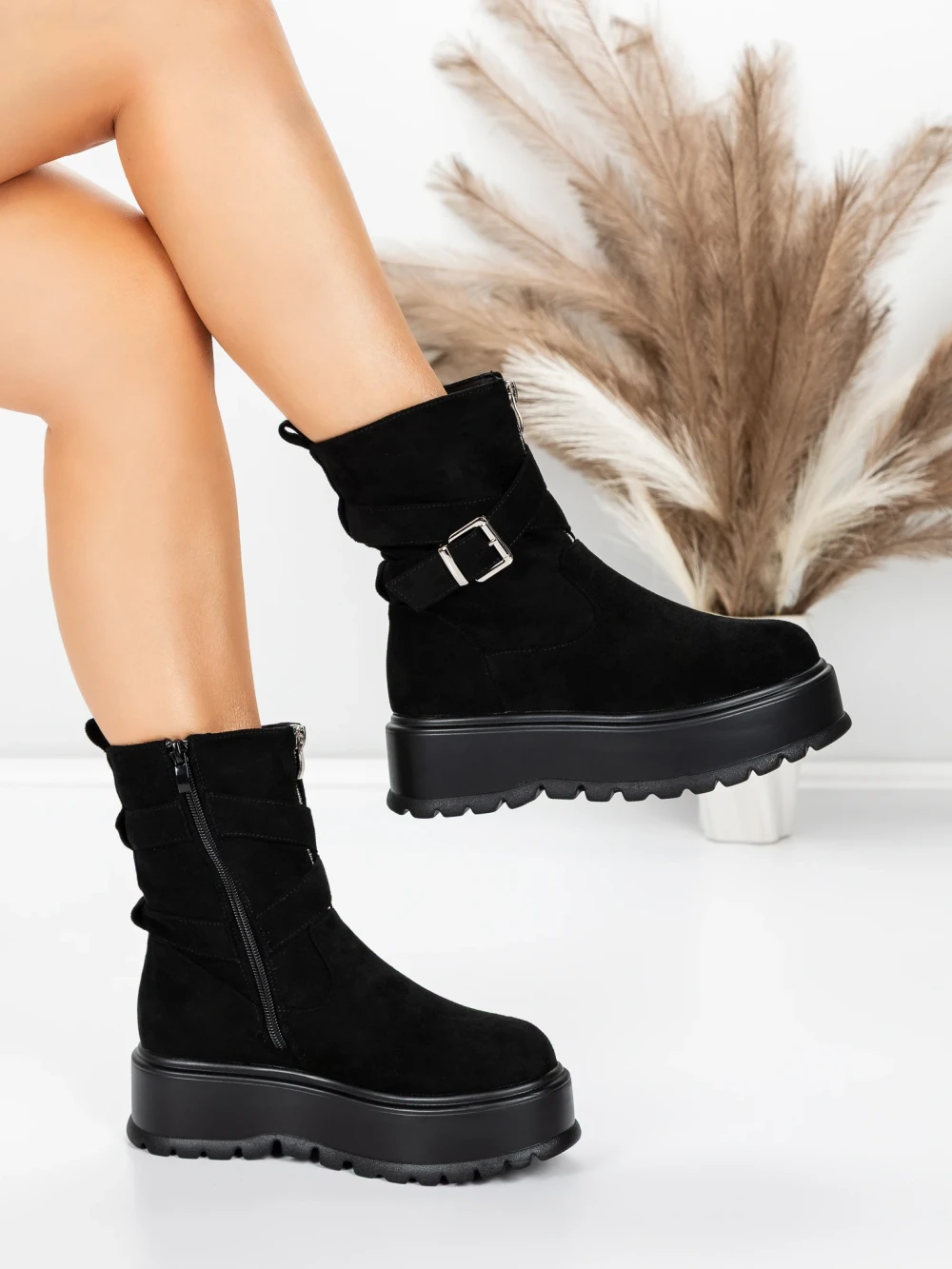 Дамски ботуши на платформа 3AD6 Черен | Mei