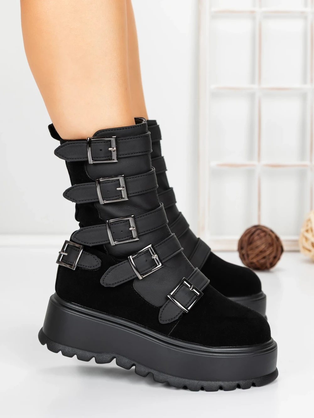 Дамски ботуши на платформа 3AL3 Черен | Mei