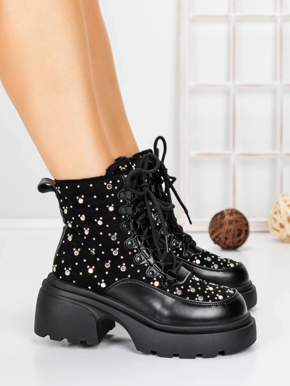 Ghete Dama cu Platforma 5WL89 BLACK | MEI