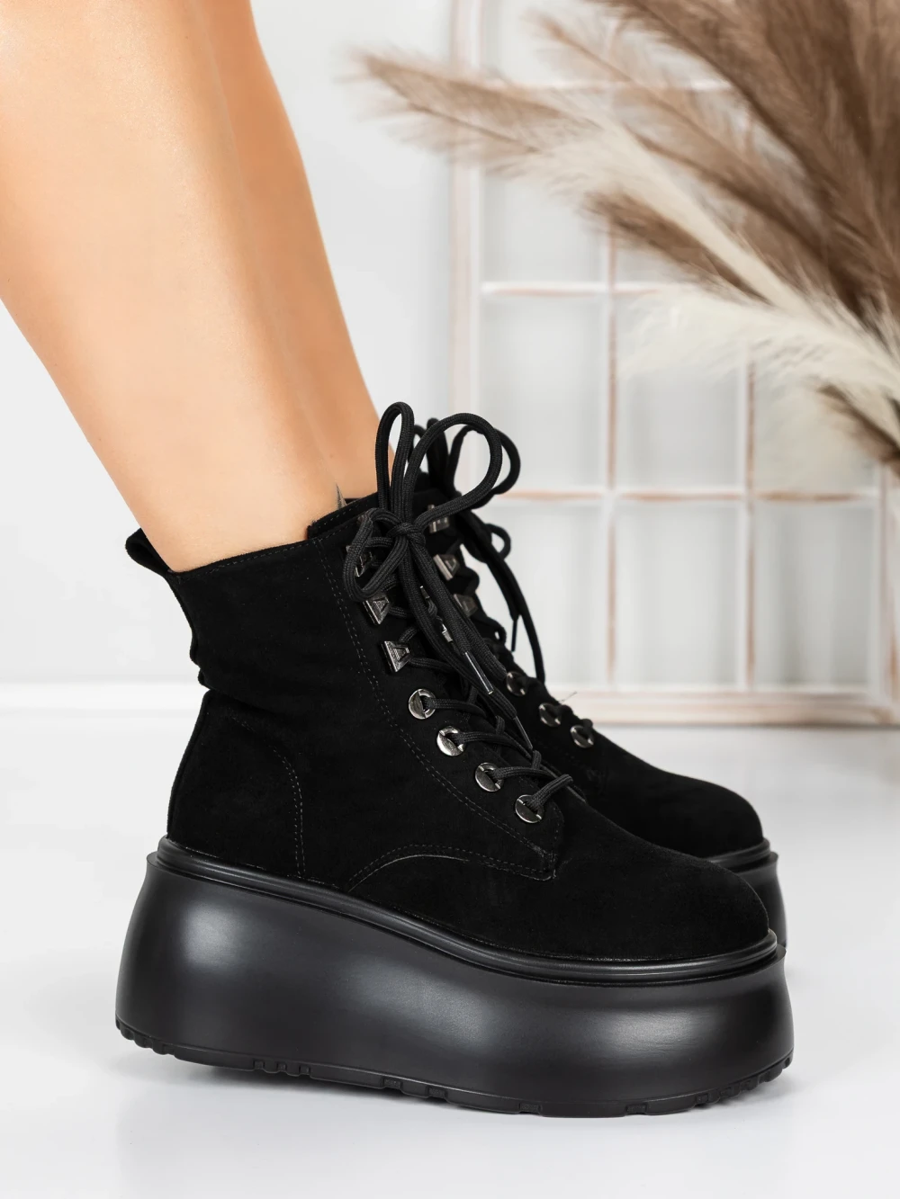 Дамски ботуши на платформа 5W83 Черен | Mei