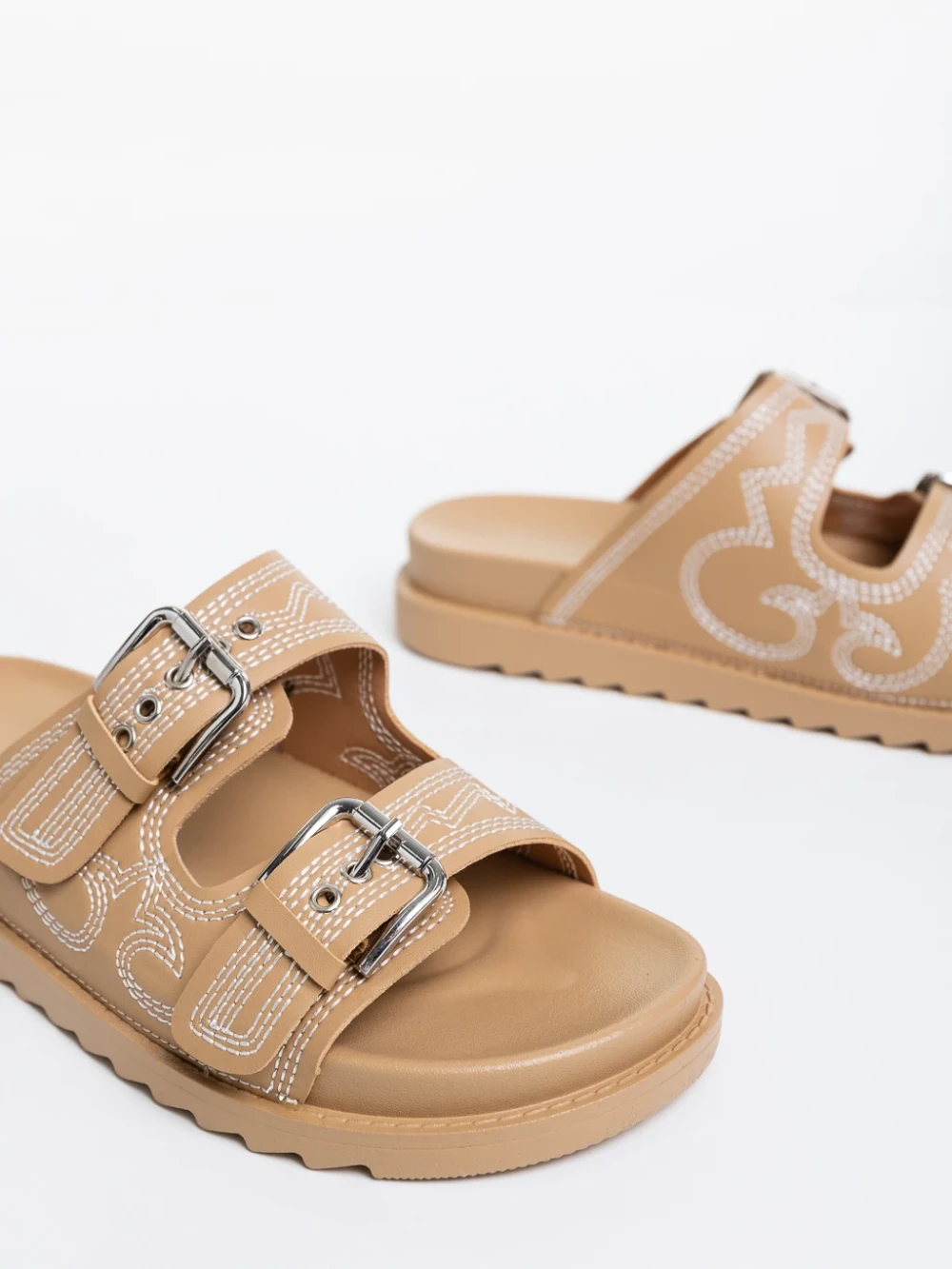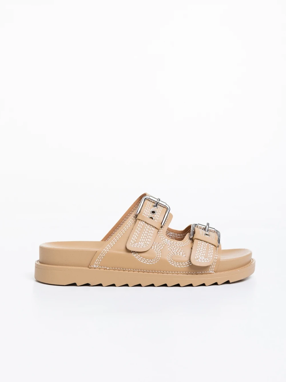 Дамски чехли тъмно бежови от екологична кожа Eiko