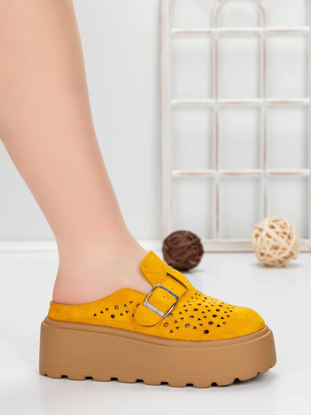 Чехли на платформа за жени 5WL113 Жълто | Mei