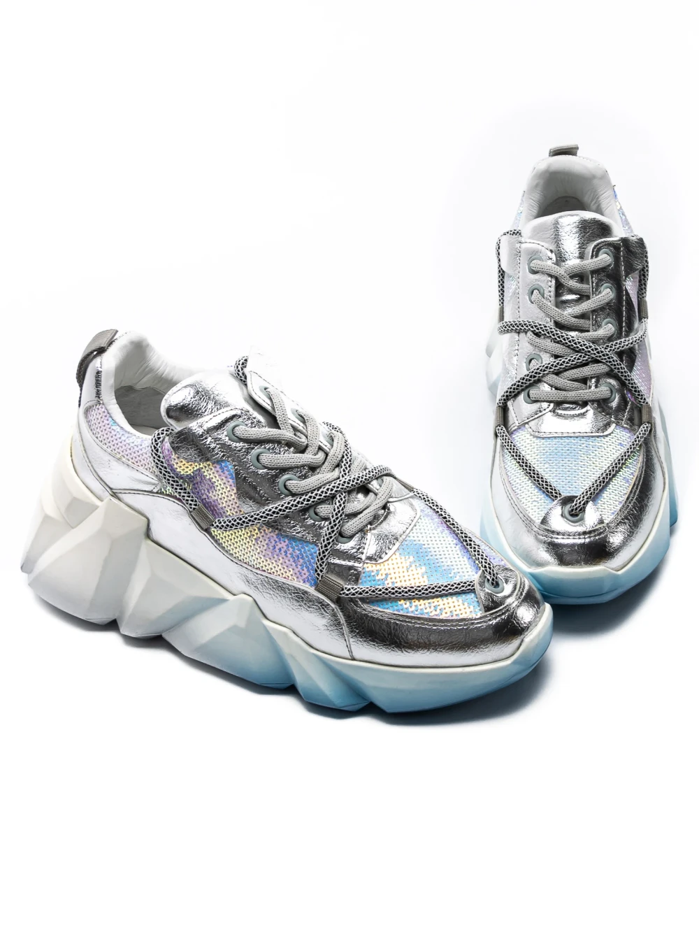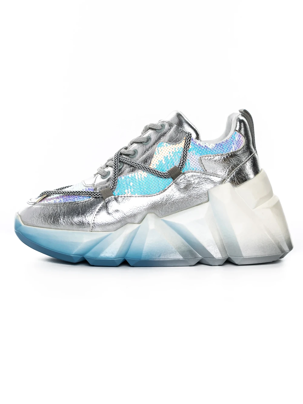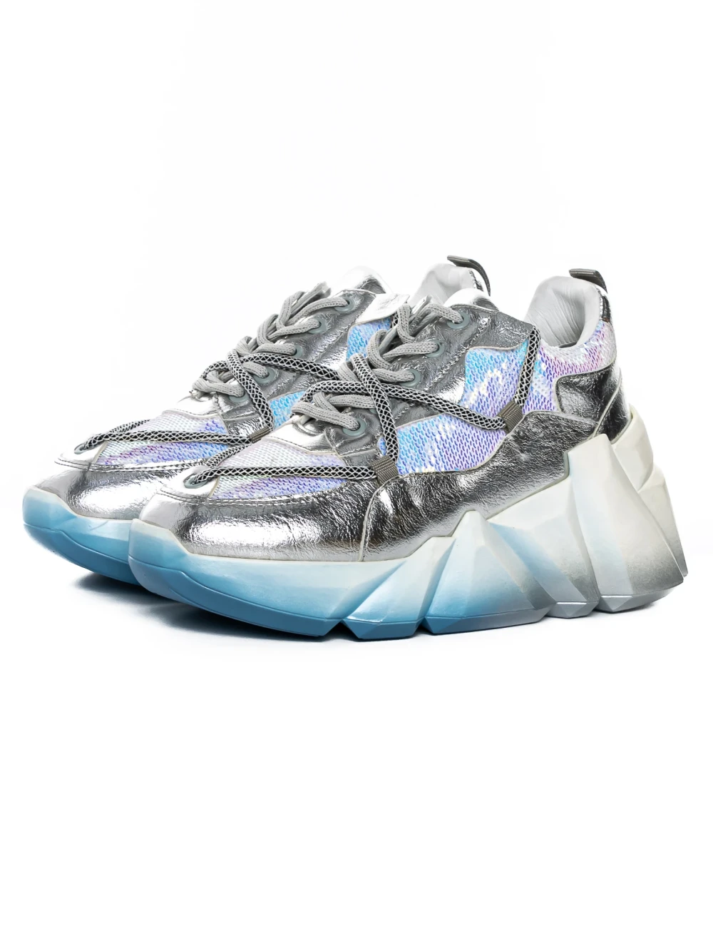 Дамски кецове с платформа 3JF29 Сребро-Синьо | Mei