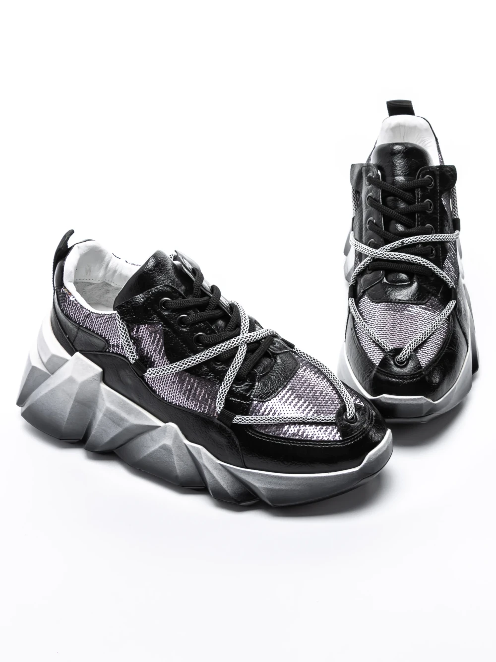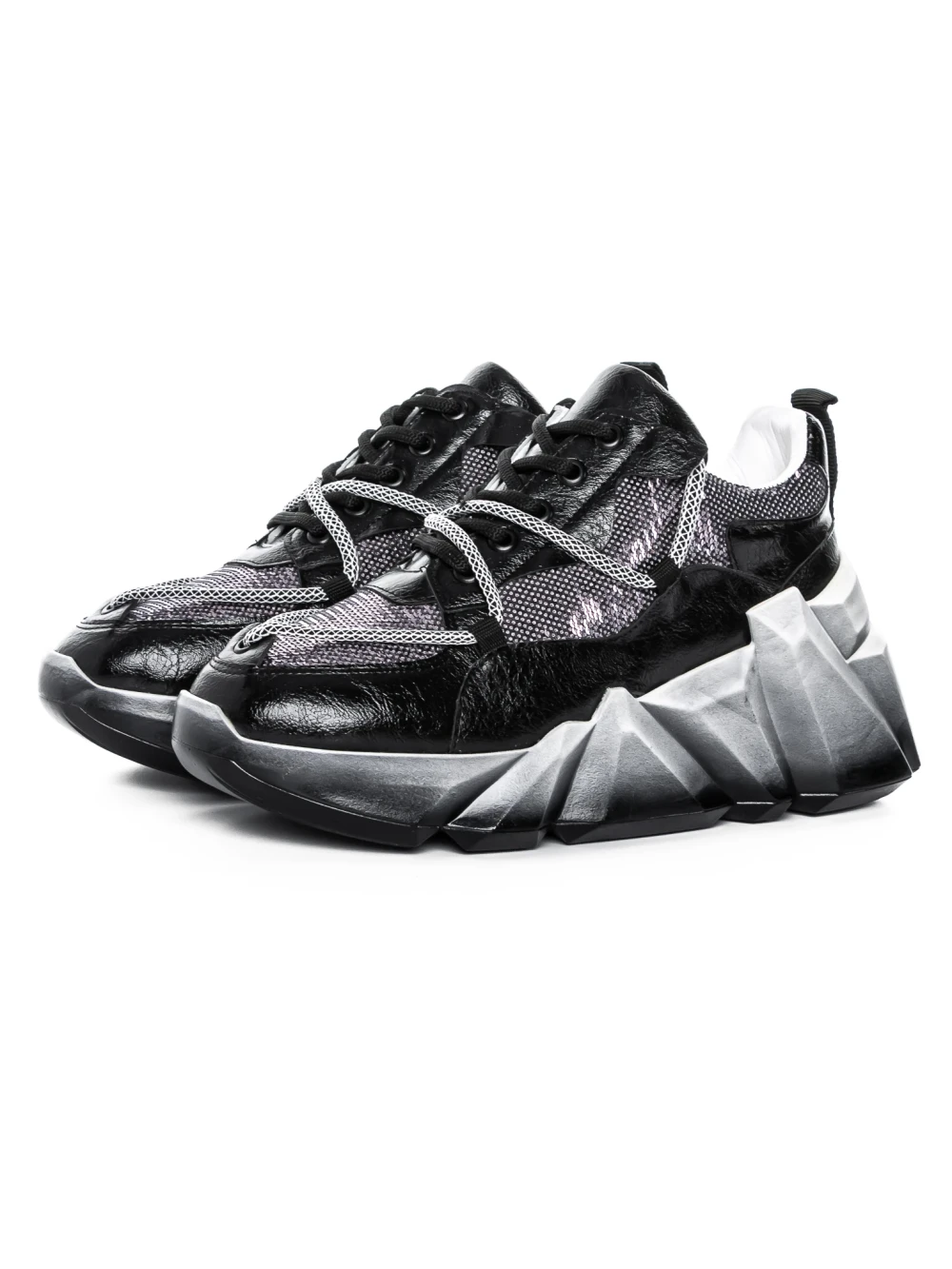 Дамски кецове с платформа 5WL50 Черен-Бял | Mei