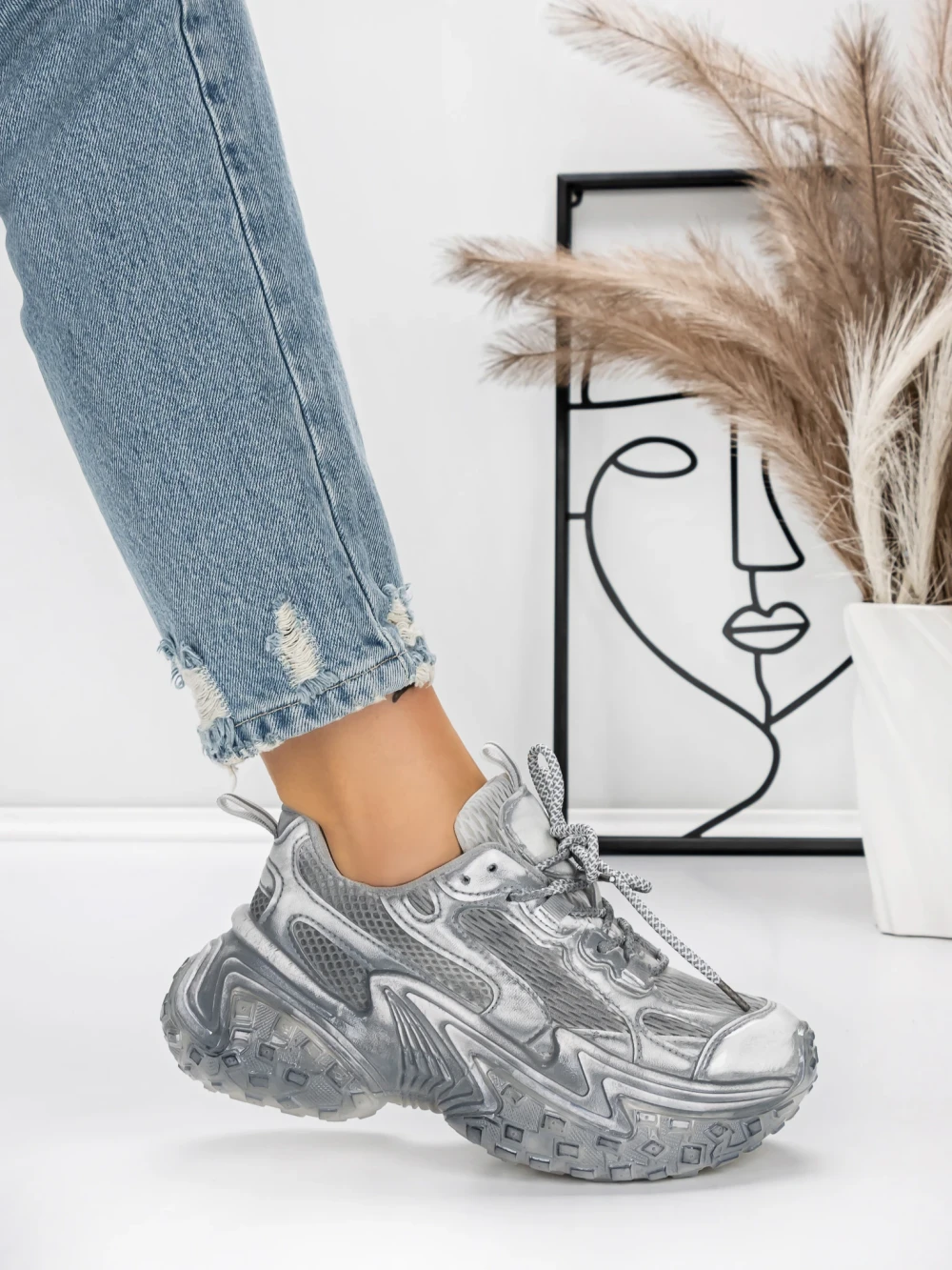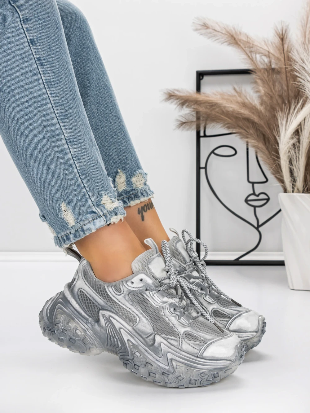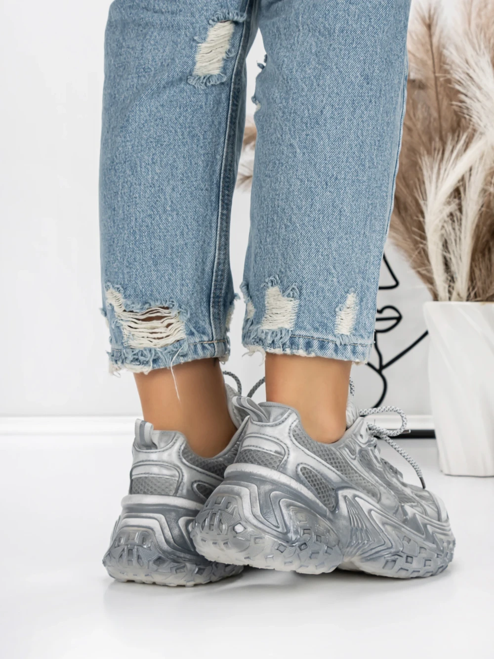 В MeiMall можете да намерите Дамски кецове с платформа 5WL83 Сребро | Mei. Живият Сребро цвят, съчетан с качествени материали и модерен дизайн, ще Ви впечатли! MeiMall е онлайн магазин, който предлага широка гама от продукти за жени, мъже и деца. Тук можете да намерите обувки, дрехи, чанти и аксесоари. Доставката е бърза, а срокът за връщане е 14 дни.