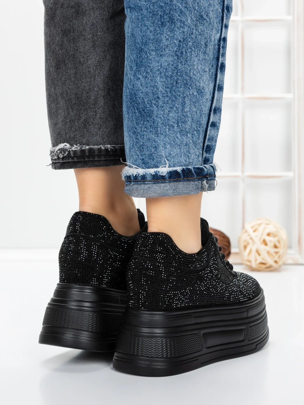 Дамски кецове с платформа 2302 Черен | Mei