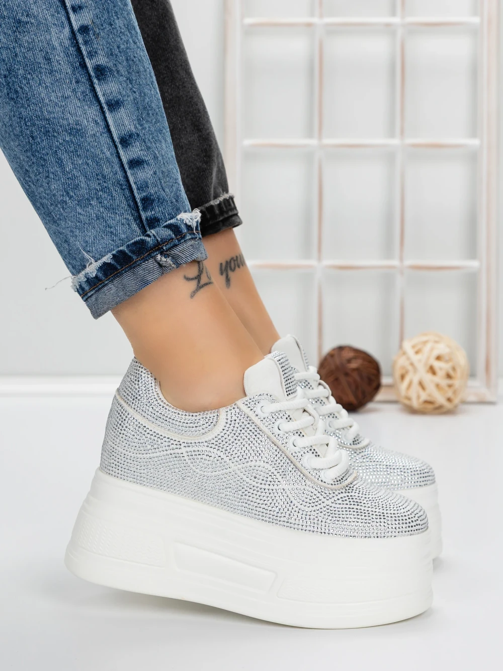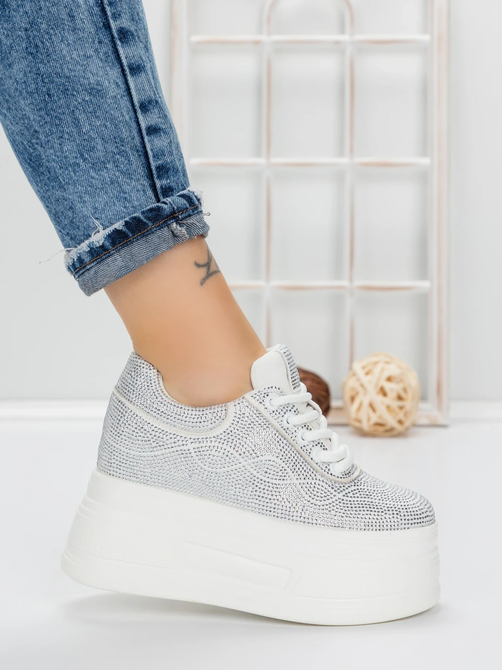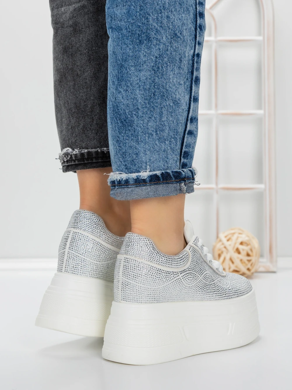 Дамски кецове с платформа 3596 Сребро | Mei