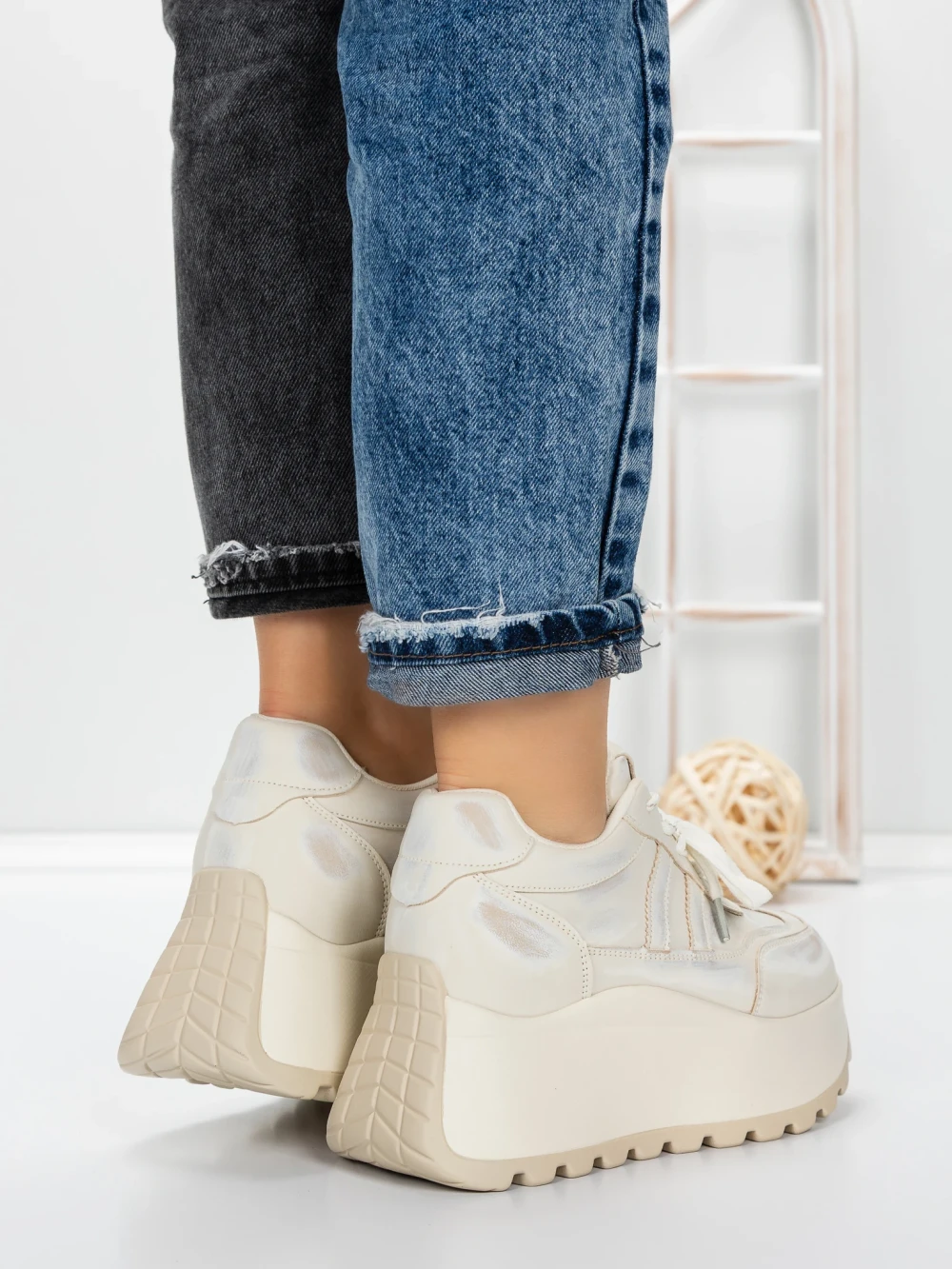 Дамски кецове с платформа 3570 Бежово | Mei