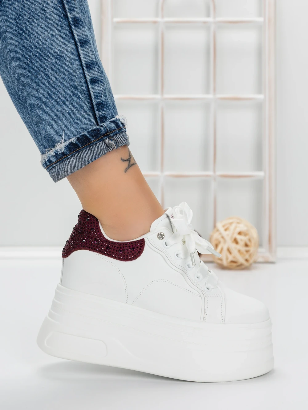 Дамски кецове с платформа 3592-7 Бял-бордо | Mei