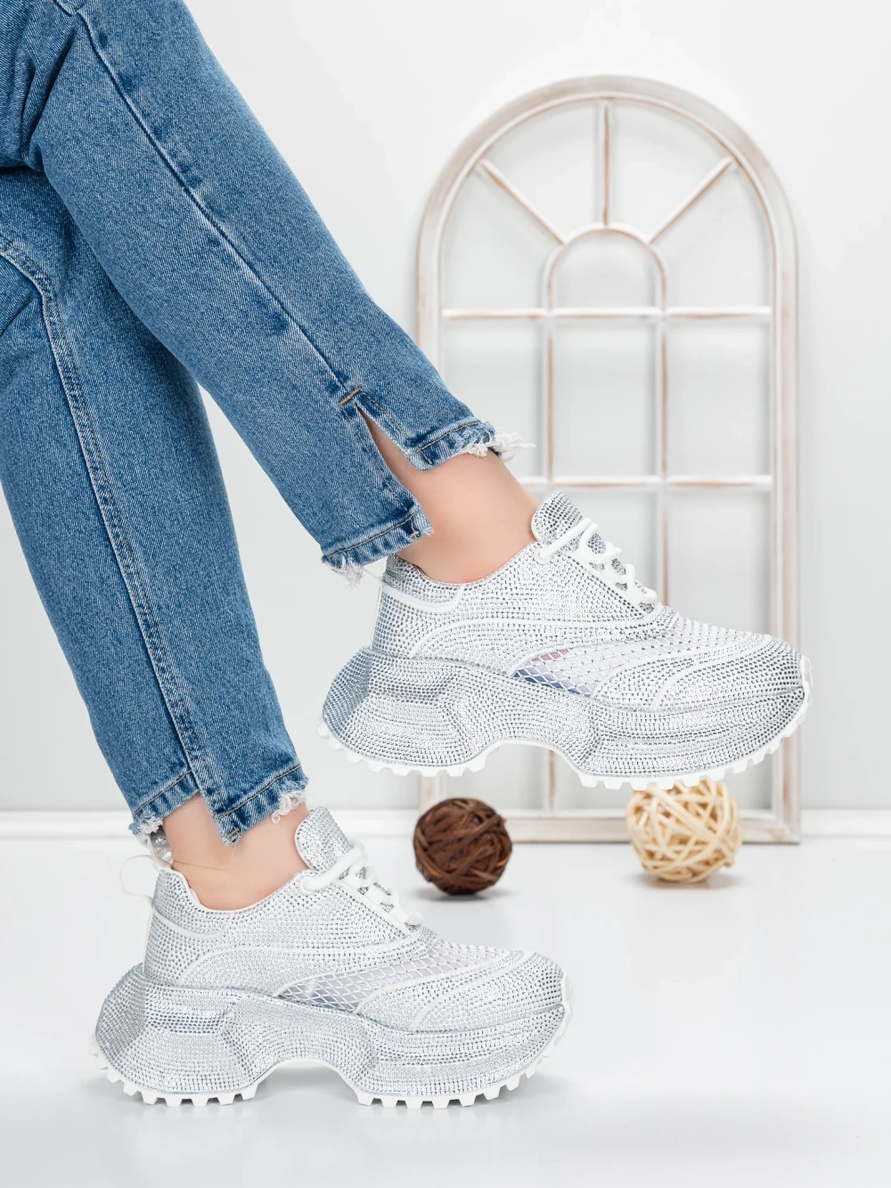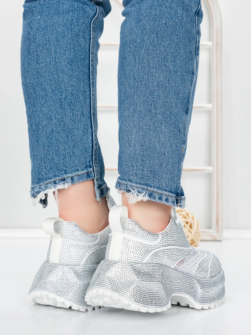Дамски кецове с платформа 3596 Сребро | Mei