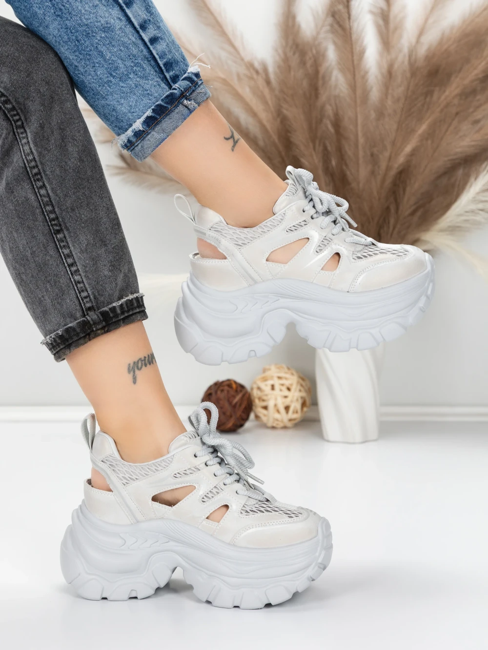 Дамски кецове с платформа 6166-87 Сребро | Mei
