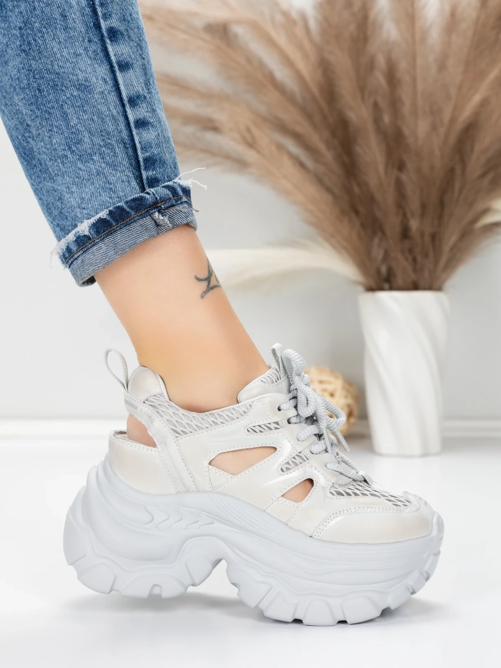 Дамски кецове с платформа 8307-2 Сребро | Mei