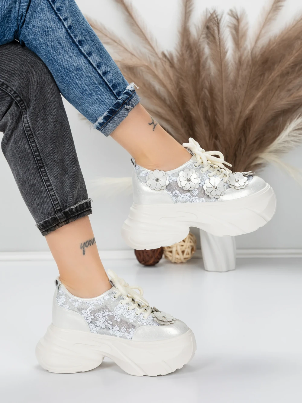 Дамски кецове с платформа M0182-104 Сребро Seniorah