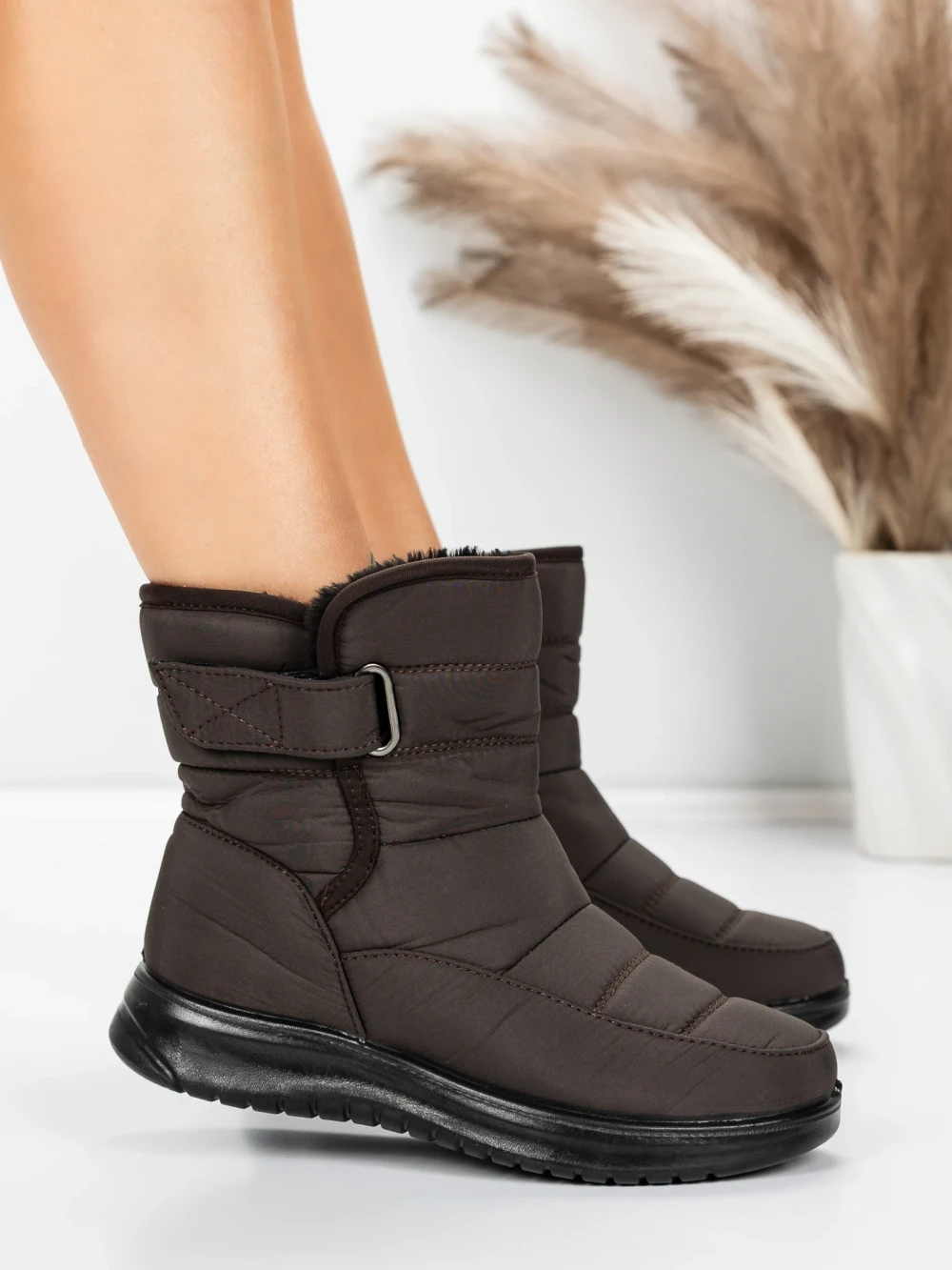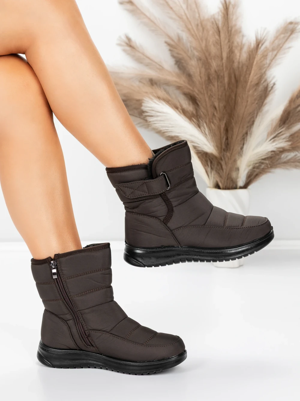 Дамски боти кафяви от еко кожа Roiza