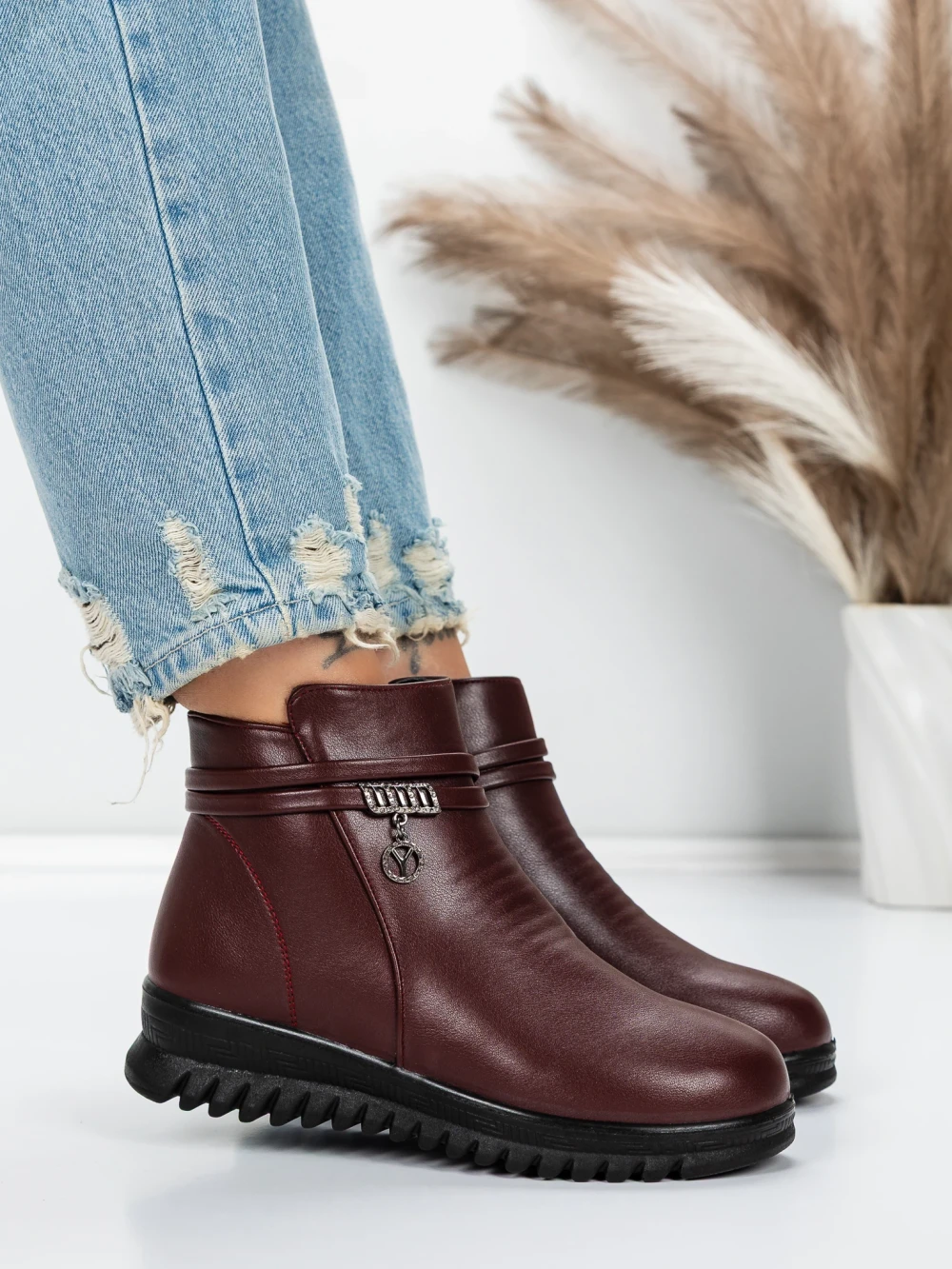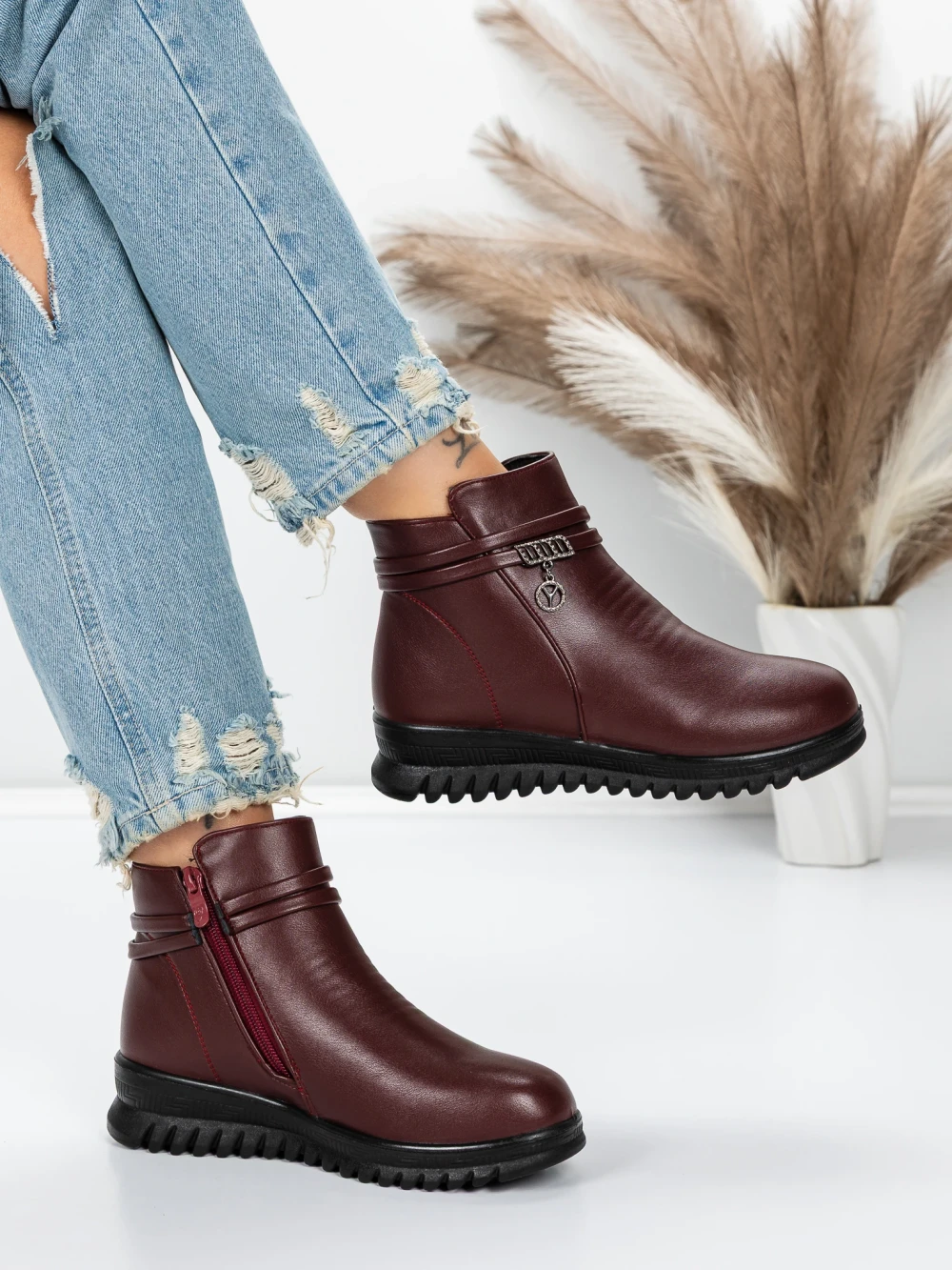 Дамски боти от естествена кожа 5W50 бордо | Pantoful