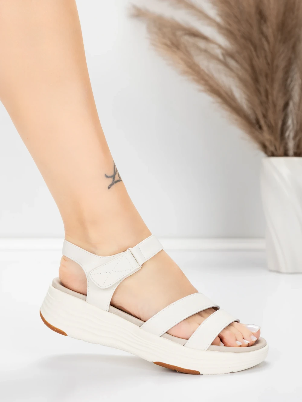 дамски сандали от естествена кожа 032 Кремав цвят | Ad... » MeiMall.bg