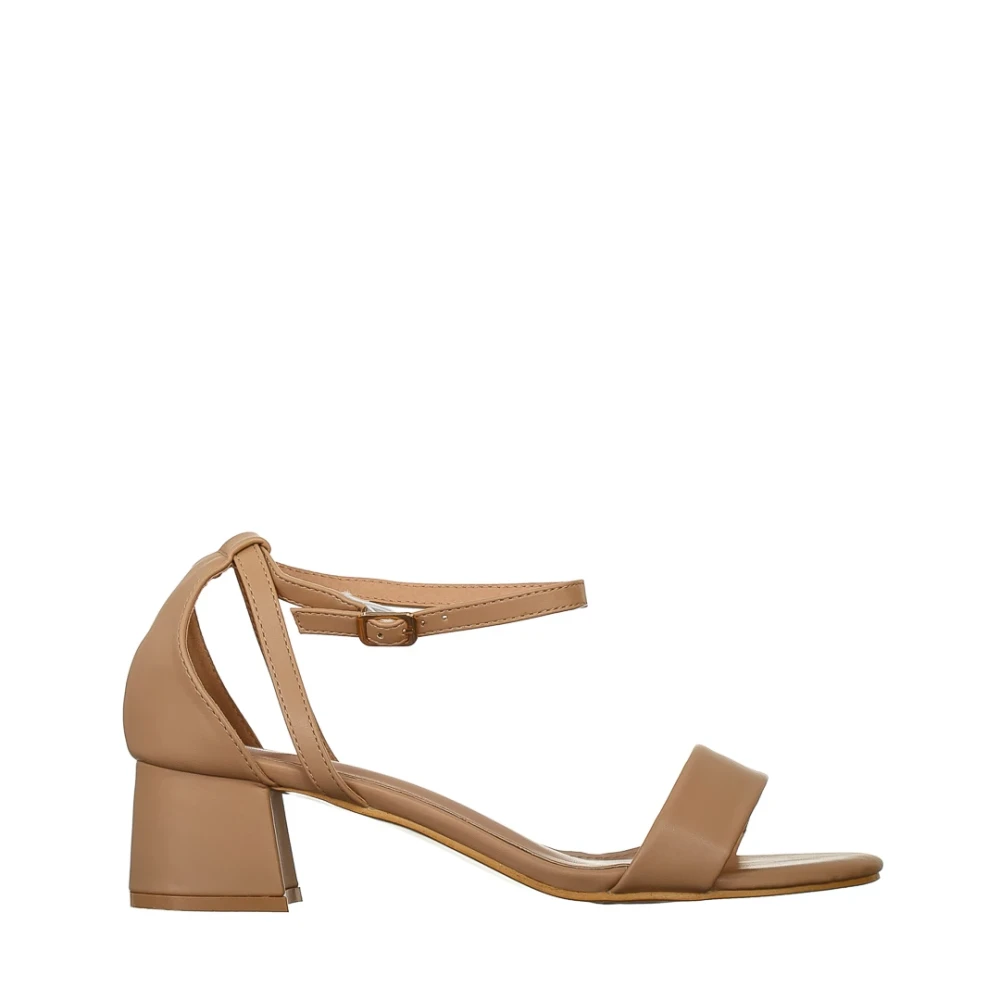 Дамски сандали с ток  бежови  от еко кожа  Aries
